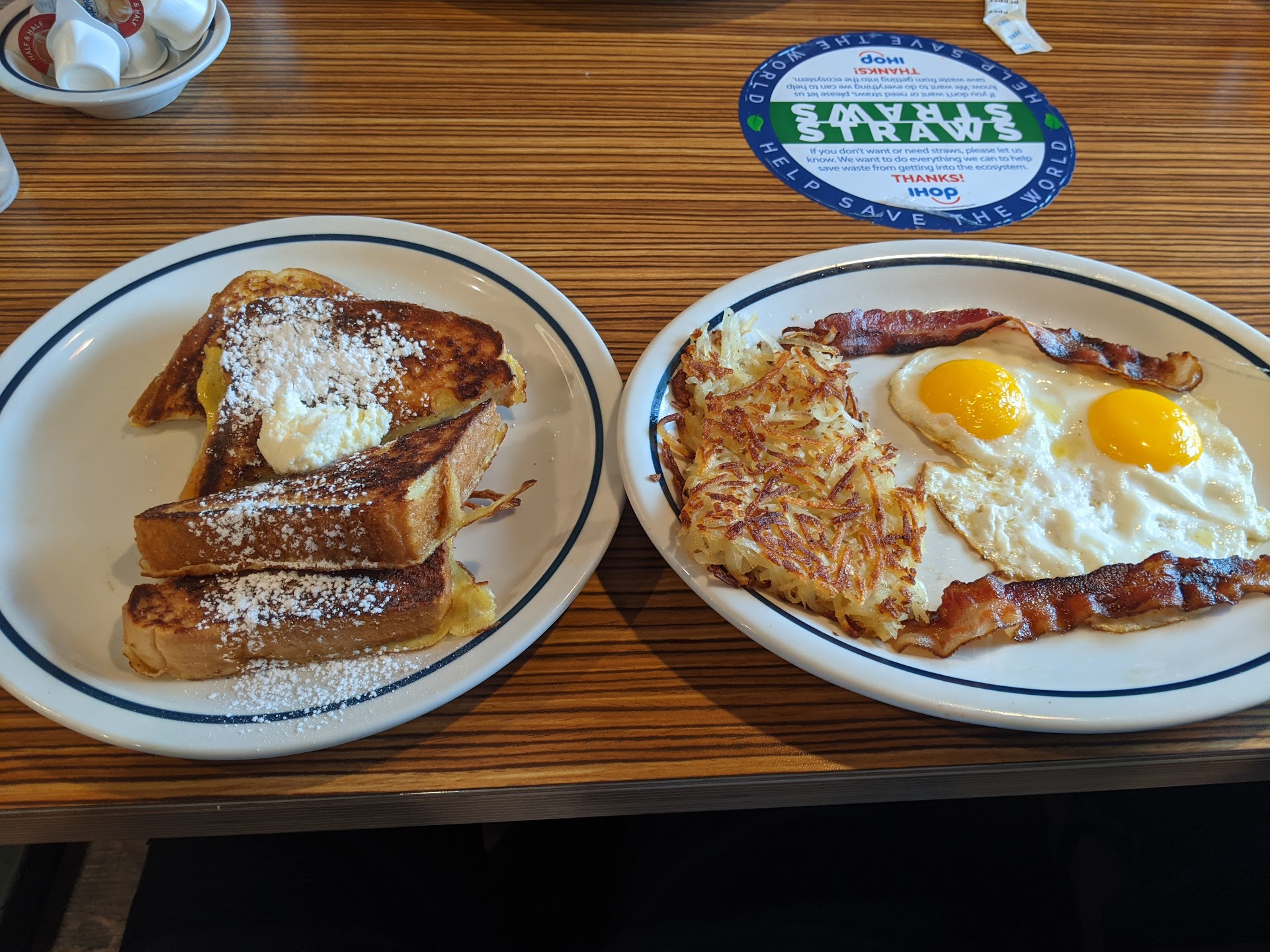 Let's start with the positive -- the food was generally pretty good. I had the French toast meal. The French toast was light, fluffy, and showered with a dusting of confectioners' sugar. The eggs and hash browns were both good, though not really remarkable in any way. I would've preferred if it'd been cut thicker, but the bacon was chewy, not too crispy, and flavorful. Basically, food-wise, everything was fine, although my mom said that her food arrived cold.