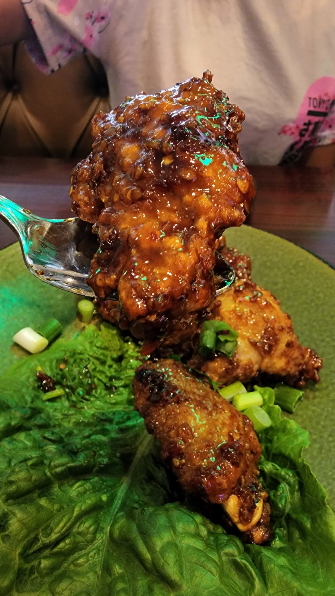 We split the zebb wings and basil bomb. Wings were not bad. However, Basil Bomb was a huge letdown. We didn't like the combination of chewy squid, dry-ish shrimp, and strange sauce. It was supposed to come with fish, but none were found. On the plate, our fishing method was unsuccessful!