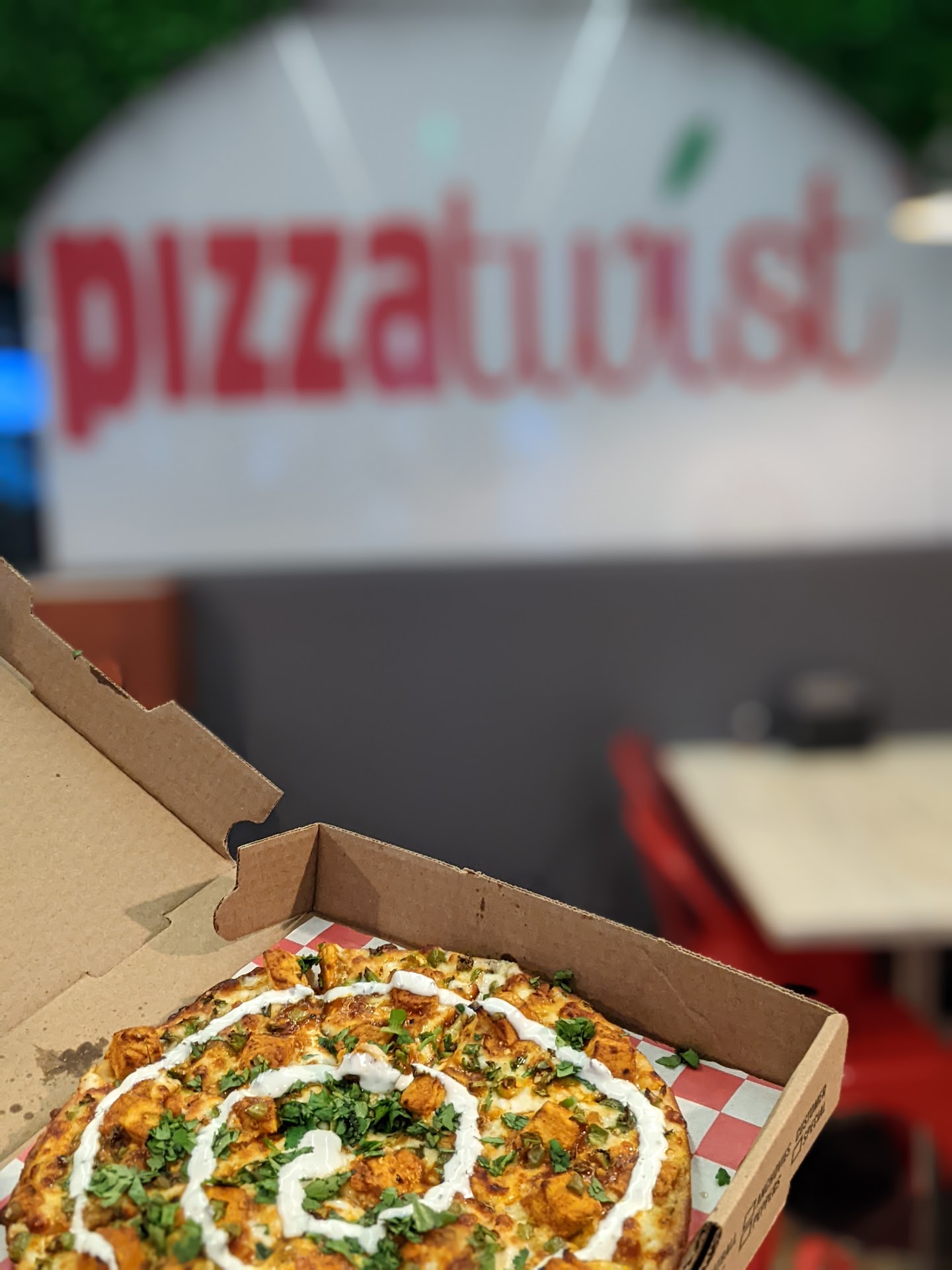 I loved the food here! The ambiance was also surprisingly nice. Very instagrammable backgrounds. I've been wanting to try the food at this place in Herndon for months, ever since I moved into the area. I was just super intrigued by the cultural fusion and thought it was a unique and exciting concept. I've been trying to get my boyfriend, who's Indian, coming to come with me for a long time, but he was sussef out because he felt like Indian food did not belong on pizza. I'm not usually one to just spend money for no reason, because I'm intensely frugal, however, they also happen to be an American Airlines dining rewards member, and there's a promo going on if you spend at least $10 you can get 500 airline miles. Thus, I figured it was the perfect opportunity. Also, just any other time, even when there's not a promo, you can get three airline miles for every $1 you spend at this restaurant, and if you sign up for their email subscription, they will automatically give you a 10% off coupon. All that being said, I went in and got a10In Reg Achari Paneer Pizza. As more of a Domino's and Little Caesars kind of person, I thought $13 was a lot for a small pizza, but it was very high quality. While it was definitely enough for me to have saved it for several meals, I have to admit that I ate the entire thing in one sitting waiting at the bus stop. I was also very pleasantly surprised that when they said that it was extra spicy it was actually spicy. This is coming from a Black Latina who uses a lot of actual spices on my food lol. They allow you to customize your toppings, and get very generous amounts of veggie chicken. They made the food fresh and you could tell. Also appreciate that they have hand sanitizer in the front and remembrance of the fact that the pandemic isn't over....