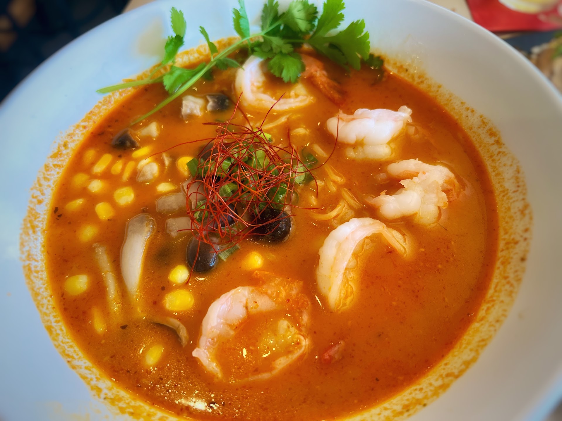 Umai Curry Ramen: This was a first for me and it was super good! It had chicken in it and the chicken was tender. I love the crunchy noodles on top, but the chewy noodles on the bottom. Very flavorful!