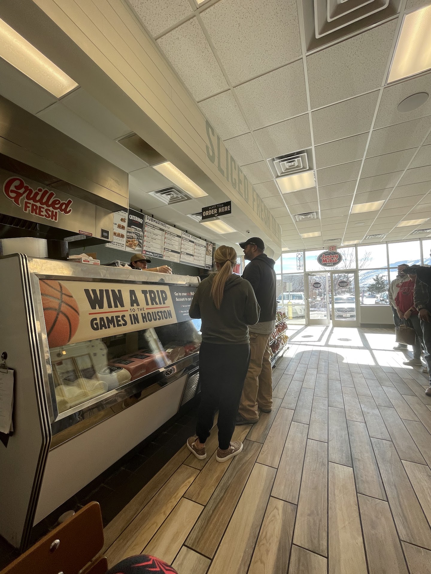 I was super pumped to go grab a sandwich after working out. Ordered buffalo chicken. Heads up- you need to tell them exactly what you’d like on it. They don’t ask, they don’t make it in front of you. Chicken is not real chicken. While making, the blonde long haired girl fixed her hair with gloves on, went back to making a sandwich. No change of gloves. Also while waiting, they are loudly complaining that “buffalo chicken is the worst sandwich to make.” All 3 of them complaining. Gentleman with dark wavy hair and lady with pink hair. I get home and it’s not edible, I cannot take anything off of the soggy sandwich. I go back in. They blame me for not telling them exactly what I want. This is my first visit to this store. How would I know? Another lady in line says “oh, you don’t make it in front of me? Then I don’t want X and X” Someone else walks in with an order pick up. Zero accountability and says, “you’re early, it’ll be out soon” You desperately need customer service skills if you wish to keep your...