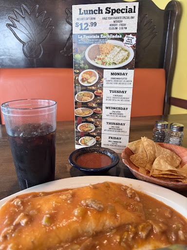 Read moreWe have been regulars at La Fountain for over 10 years. This last experience, the Herriman La Fountain will be the reason we never go here again. I have routinely gotten my same three enchilada combo every time 1 steak and 2 shredded beef with red sauce. The waiter seemed a little bit confused and asked if I wanted red chili sauce to which I said yes, the red sauce. They prepared some sort of Colorado edition of this sauce and it had random chunks of insanely salty dried out meat that ruined my meal. My wife got the chili Verde special and inside her burrito was nothing but beans and hers was also insanely salty. The waiter did offered to remake our food, but we said no, as we didn’t want to inconvenience them for the mistakes and we were pretty salted out at this point. We tried to use a coupon for five dollars off that we have routinely been able to use it at the other locations and to my surprise, they said they won’t accept it. Later this evening, we each have had to drink close to a half gallon of water to compensate for the amount of salt that was put in our meals. I hate to say this, as I would love to give flowers to any Herriman business I can, but you’re going to be better served to go elsewhere. After this experience, it has been brought to my attention that this location does not care about how their customers...