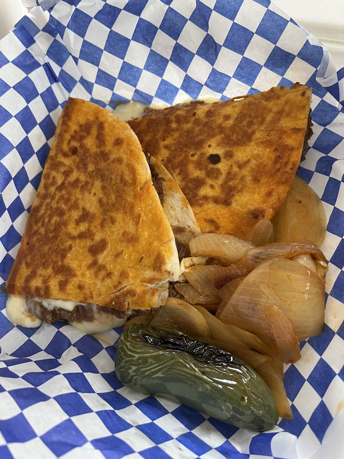We tried Los Tapatios Taco Grill today, it was really good. We tried the Birria Crispy Tacos with Cheese and the Birria Quesadillas with Cheese also, both were delicious. We did a drive thru order, very fast, super friendly. The condiments were yummy, they automatically put them in the order, which was so helpful, as we didnāt know what we could ask for. They included lime wedges, red hot sauce which was very tasty and mild, green hot sauce which was pretty hot, red onions and cilantro pico. We also ordered 8 oz cup of consume to dip our tacos, it was excellent. We will definitely be making this a regular...