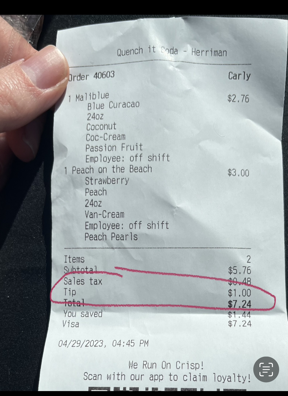 Read moreThe only reason this place has good ratings is because they’re open Sundays. We waited over 45 minutes in a drive thru line because some idiot ran over a boulder while leaving, it stopped the whole line for 30 mins. They weren’t even blocking the drive thru (see photo). Oh and by the time we got to the window? They hadn’t even started our order. 3 of their 5 workers were just visiting with the fool that was stuck on the boulder. What about the other 20+ customers in line!? Also, drinks and food were NOT good.