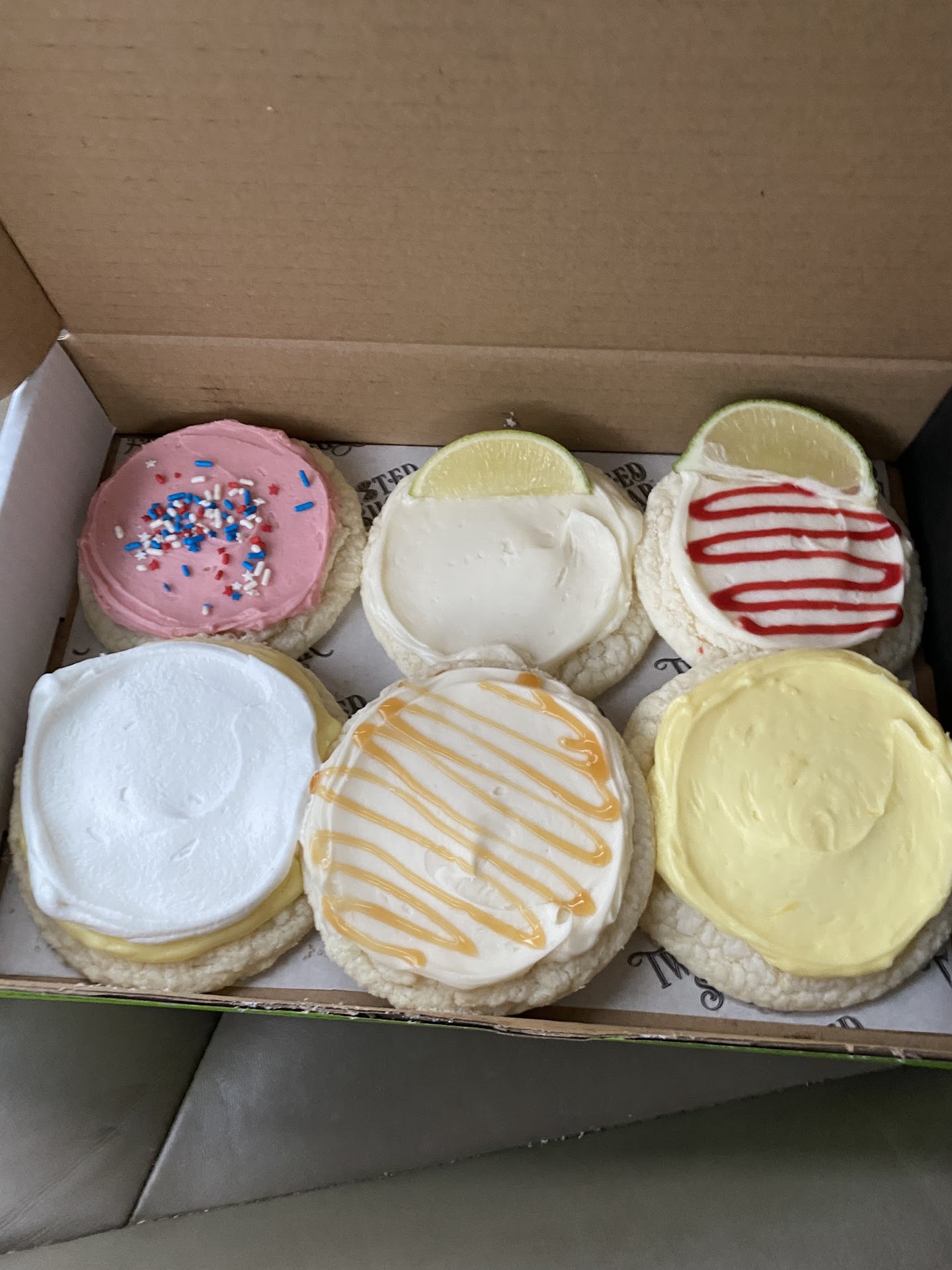Read moreThe absolute best cookies I have ever had from ANYWHERE!!! The banana cream pie tastes like a (and non-waxy) Moon Pie that somehow never has the dried out cookie like the Moon Pies always do!!!