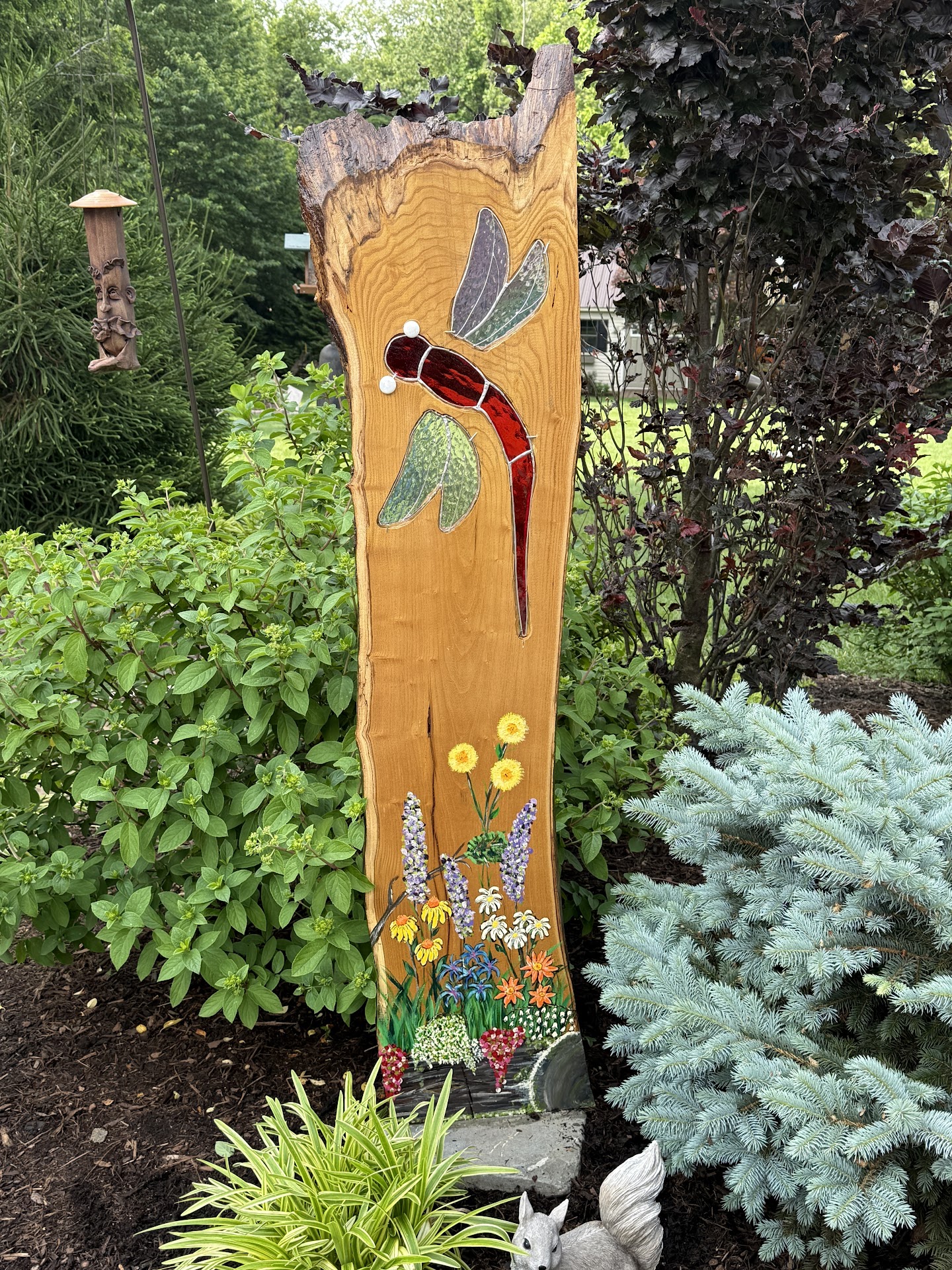 Once I finished cutting the wood, routing it to fit the dragonfly parts, and painting and varnishing it, I was thrilled with the final result. I want to express my gratitude to Laird for his suggestions, ideas, and training.