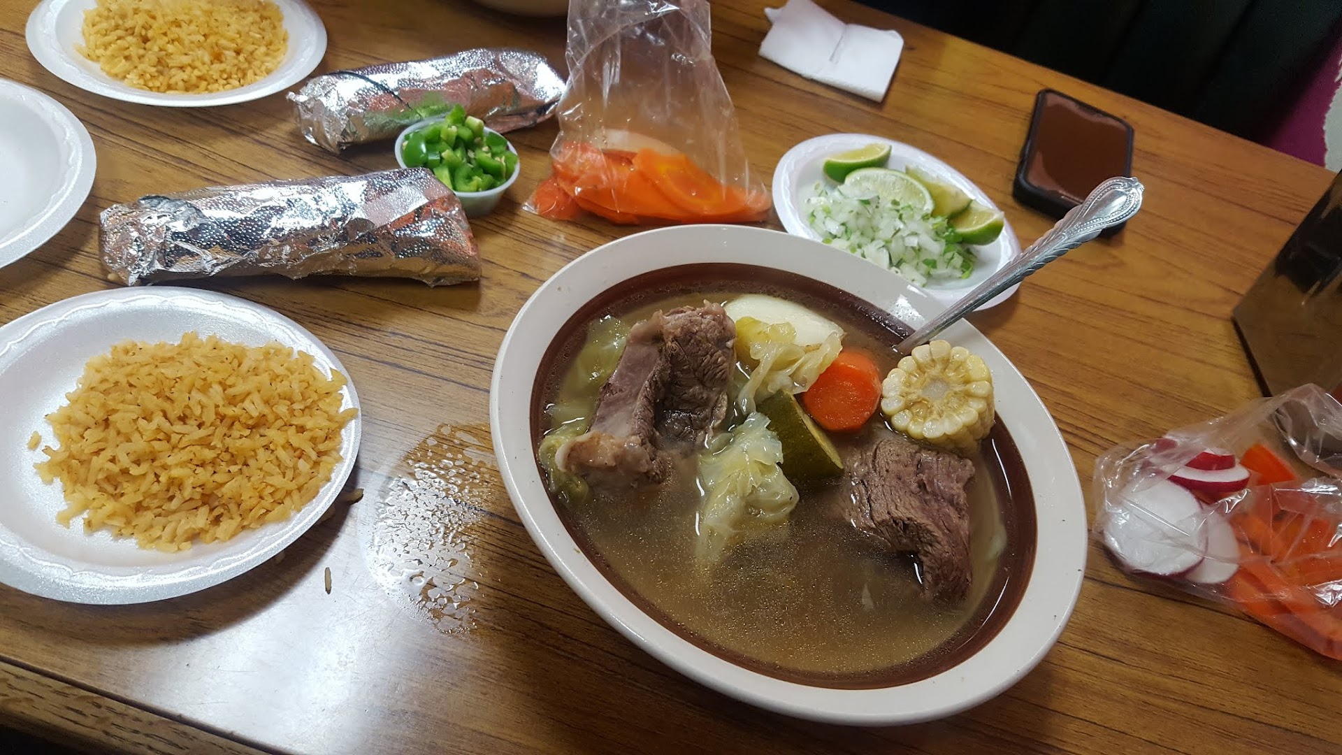 Read moreWent here with my cousin, he's had the soup before. I was pleasantly pleased. Its got a good beefy broth, as it should. Good portion of beef. I would've liked a bit more veggies. I'll certainly come back again and when i do i'll ask for more even if i have to get charged extra. Small Salad Bar, contains radishes, pickled carrots and only one chipotle based sauce. I only ate half and brought the other home. Rice was ok. Paid about $9 taxes included per each.