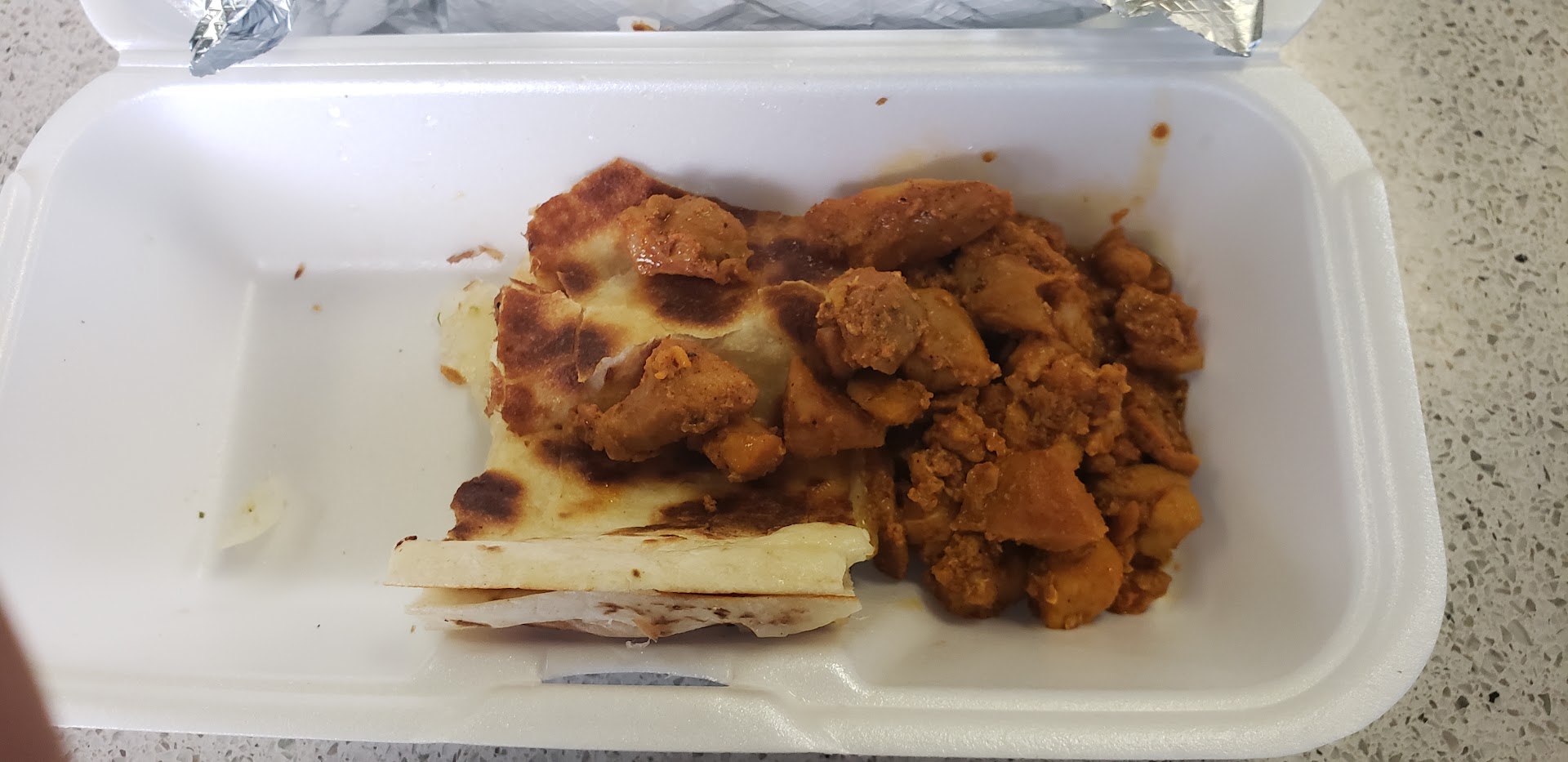 I was supposed to get a mini super quesadilla, but all I'm in case super quesadilla is is a quesadilla with meat. Nothing really super about it so I call it super. When I got three pieces, I had already eaten too and I realized there was no meat. I went back to talk to the Kooks and this is what they gave me. A pile of me on top of the last piece of quesadilla. I went back to talk to the person who took our order and he Shrugged his shoulders and said well it's the cooks fault.