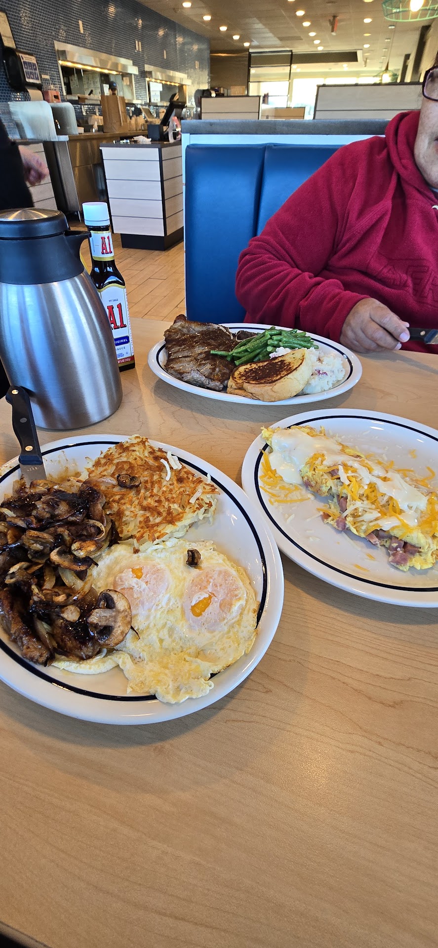 Read moreThere was confusion over a number of Pancakes for price for one we think the price is way too high and two the size of the pancakes is not anywhere near the quality of IHOP corporate apparently this is a franchise another corporate store the manager did take care of everything we were able to use our points from our app but the quality of the food was not the standard either the pancakes were very small hamburger was sloppily put together cheese and onions were dripping off of the plate onto the table waitress handled the food with her thumbs in the plate brought two coffee cups for waitress bottom holding the inside of the coffee cup first we asked for decaf and we report something that seemed a little bit like oil sludge it was burnt old and tasted terrible they did remedy the situation but I don't think we're going to be going back there for quite some time maybe the store's too new there's training issues whatever the case is I don't want to deal with it and I don't want to deal with the confusion get it right people make it right I've reading the IHOPs all over the United States it normally tends to be my go-to while I'm not driving my load to wherever I'm going the three star I gave was pretty much what covers the the fix and repair job the manager did but as far as food and service two...