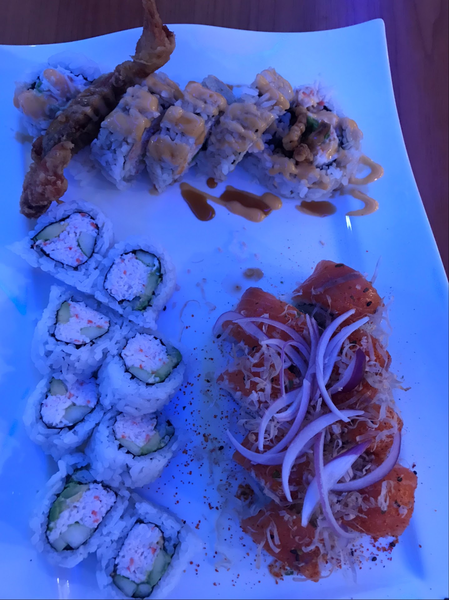 After being seated and ordering we waited one hour before receiving our food. When it arrived, both of our orders came on a single serving dish. I asked for a plate so I can eat my roll and the server seemed upset by this and snatched the entire platter off of our table to have the sushi chefs replate it but I told her it wasnât necessary I just needed a plate for myself. She made another server bring us a plate and made a comment about us âsharingâ even though we had each ordered separately.