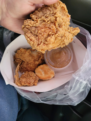 Read moreDrive thru... Ordered the three piece, all white meat, extra crispy meal box with two sides and a medium drink. The chicken was two "huge" breasts and a meaty wing. This meal had mashed potatoes and gravy and coleslaw (my specific choices) as well as a biscuit. Dr. Pepper was my drink choice. The picture is the meal (coleslaw is under the mashed). I have slightly larger than average man sized hands. The single piece of chicken breast FILLED my hand, both pieces individually. I was amazed at the portion size!!! The chicken was perfectly prepared; tender and juicy inside, and crispy outside. THE BEST KFC MEAL I EVER PURCHASED!!! The entire meal came in at just under $15 and was quite the value. Drive thru service was efficient...