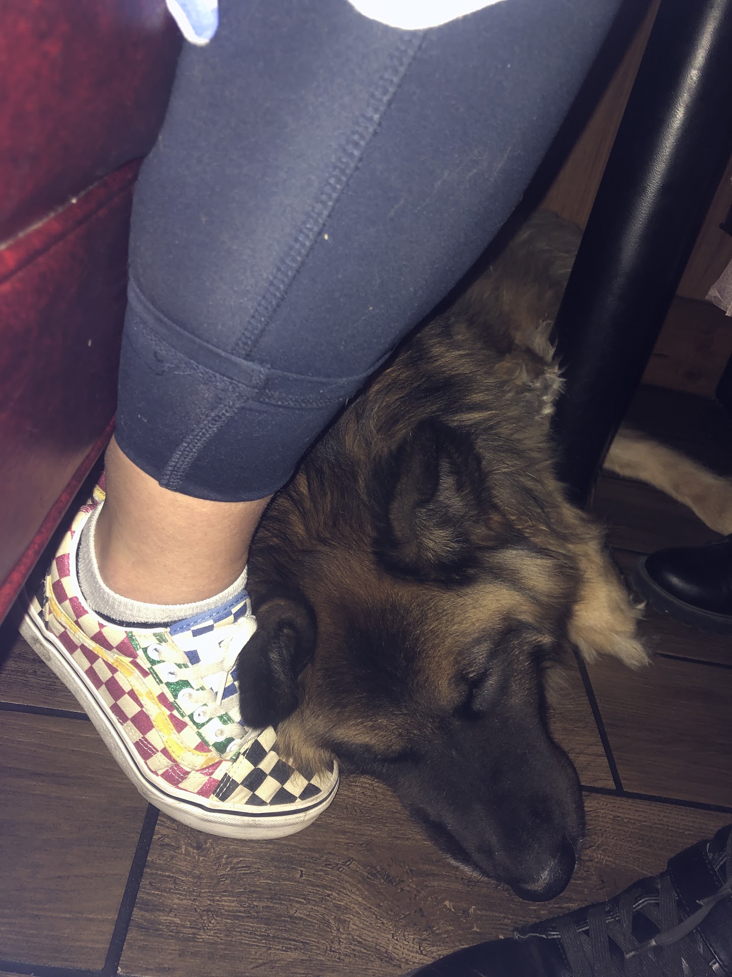 Ā Ā Ā Read moreUsed to love it here and come frequently to the Hesperia and Wrightwood locations. However, today, upon entrance to the establishment I was greeted by an untrained host who proceeded to tell me my service dog ādidnāt look likeā a service dog and would need to call his manager. He continued to berate us and instead of calling his manager he stood at his computer sending an order. Now I understand a lot of people attempt to portray household pets off as service animals and it is making it more and more difficult for establishments, however, one asking me if he was indeed a service dog and me stating yes and that the service he provides is seizure alert for my epilepsy that should have been the end of it. I have come multiple times with the exact same dog who accompanies me everywhere including theme parks and airlines and have never been made to feel so discriminated against. Please if you have a service animal be prepared if coming to this Establishment, I was so humiliated I wanted to cry. Please see attached photo of the dog who ādoesnāt look likeā a service dog laying under the table as he is...