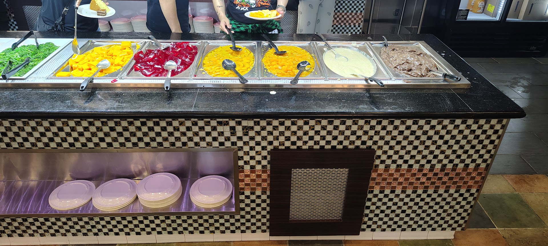 Sushi are all okay. I tried every type and none are unacceptable . Not comparable to a real Japanese restaurant handmade stuff, but for all you can eat it's above average. The sashimi is slightly disappointing - the tuna suffered from suboptimal defrosting or storage, being below expectations on flavour and texture. Next is the teppanyaki. No expense was spared with flanken ribs (calbi) provided. The steaming hot finished dish has strong flavour profile and recommended. Four soups are available. I'd recommend the seafood tofu as it's almost comparable to restaurant fare, with the hot and sour not far behind. Full salad bar with cold seafood. Octopus and vinegar chicken paws are recommended, although the latter could use more cooking time for a softer texture. Five counter's worth of entrees are available. All are acceptable to very good. Some are rarely available at buffets like BBQ pork bun, not that it's so good it'll put dim sum joints out of business, but for variety. The only exception is the salt and pepper shrimp, which suffered from the same problem as the sashimi, although the other shrimp dishes are okay. Big desert table, including cream cakes and fruit. Ice cream is really good for a buffet. Score one for kid friendliness. Service is acceptable, I experienced no issues mentioned in other reviews. Since it just opened, I feel a few dishes are below expectations is not surprising. I hope they will sort out the teething issues, for instance some could be equipment or procedures related and would not be difficult to effect improvement. There's no doubt that the back kitchen can deliver reasonably good food for such an ambitious spread.