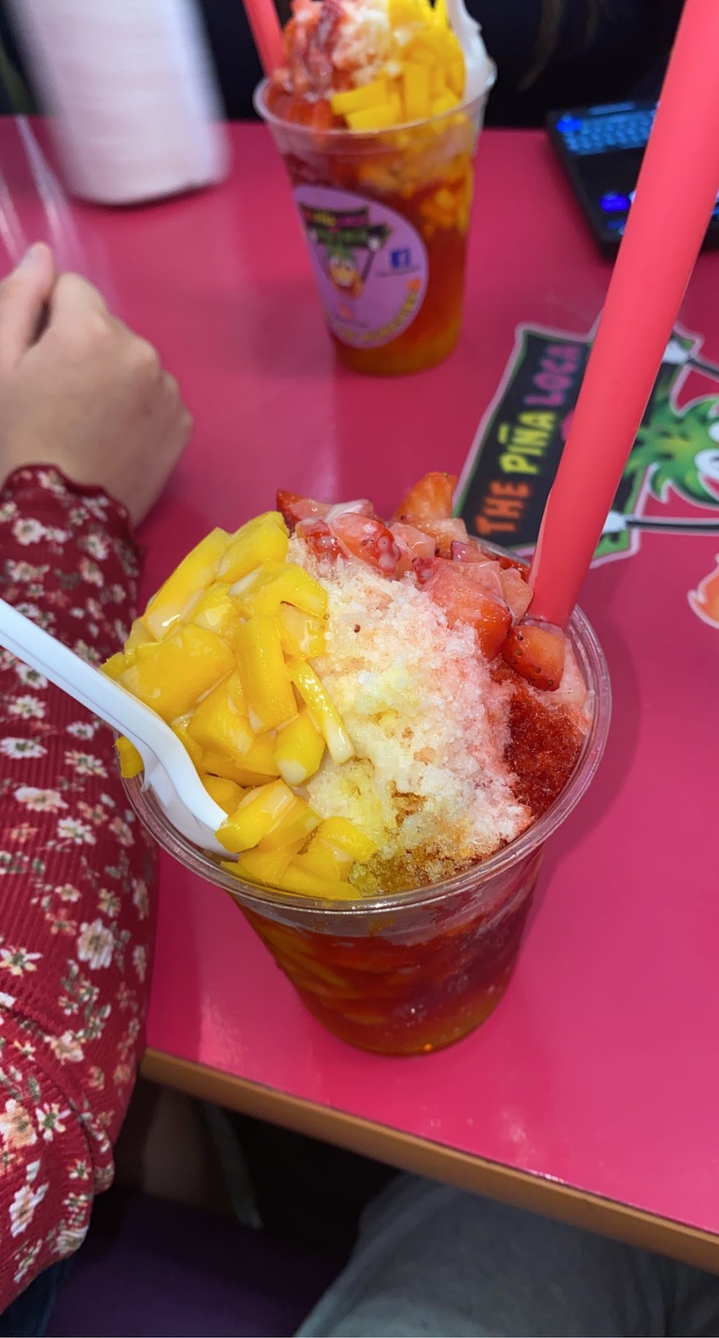 My second visit, today, I ordered the same thing... She tried to up sale or pretend like she didn't know what I was talking about, but eventually figured it out. Strawberries and creme and one popsicle($2). "Seis" she said. Like OK... $1 more than last time. I gave her my atm card and she charged 50¢ extra, no explanation, no signage. $6.50 for a popsicle and strawberries and creme in a carton?! I was pissed. Seis = 6