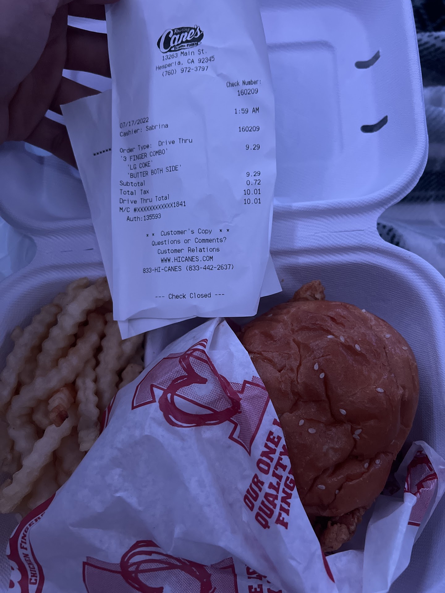Update 11/7/2024 I love everything about Raising Cane's except feeling like I am being nickel and dimed for every little thing. I ordered chicken fingers by themselves and was told the sauce doesn't come with them, only if you get the combo. That makes no sense. If I ordered fries by themselves, then I don't get ketchup unless I pay for it? No. Also, 4 or more fingers should come with 2 sauces, without paying extra. You should not have to pay for the sauce...period!!! Especially if you are only getting 1 or 2 per order. And then there's the issue of the lemonade. If you order the combo, you can't get lemonade without paying extra. Tea or soda only. Like I said, I don't like being nickel and dimed for every little thing. It really takes away from the pleasure of my experience at Raising Cane's. There are very few restaurants that charge you for their sauces with their food. If you want extra, more than normal,...