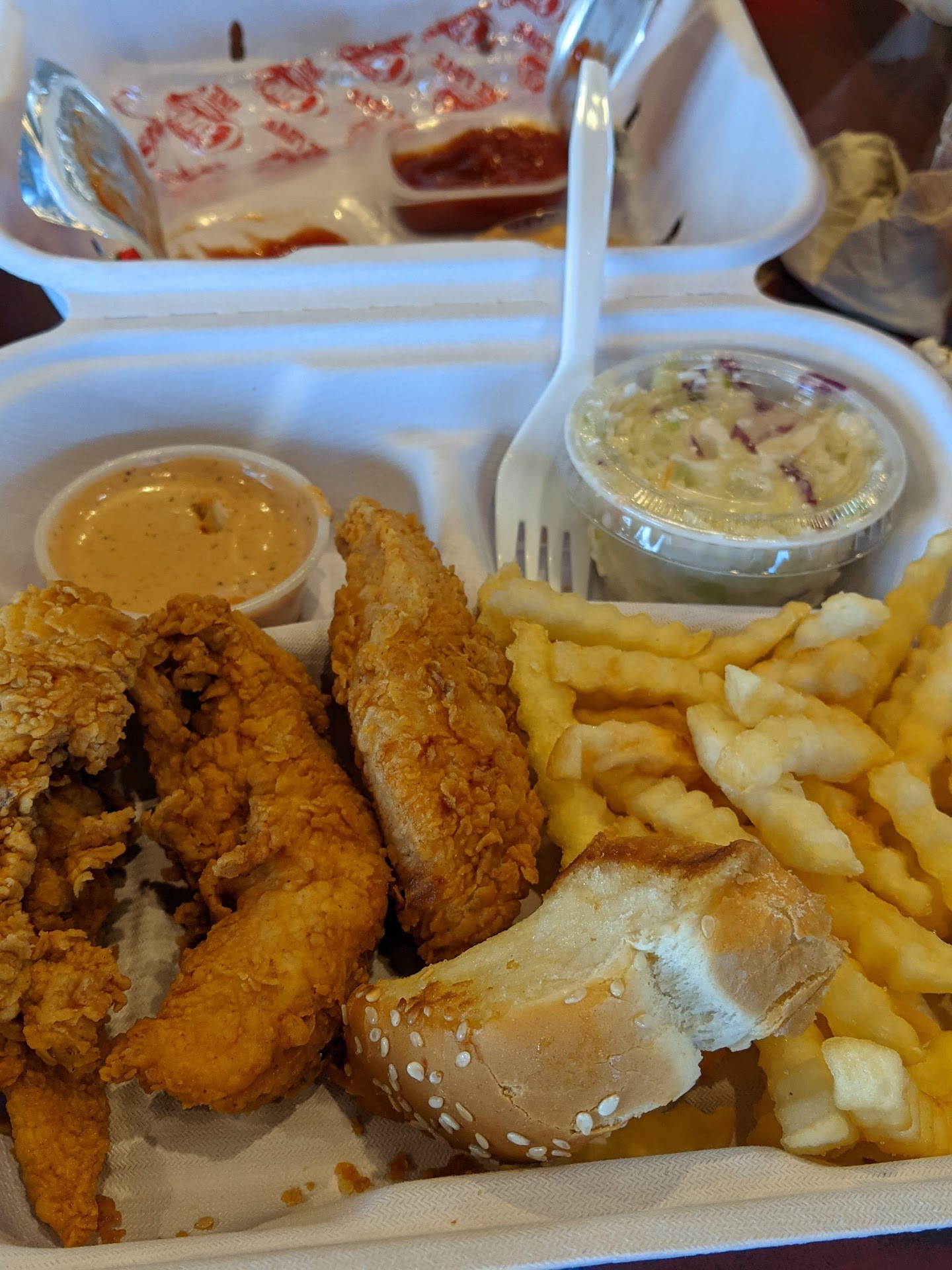 I had to drive through and tried to try it for the first time. And I'll be honest. I got it for the whole family. It wasn't shape by the time I finished getting everything that everybody wanted supposedly. I had one chicken finger or whatever you want to call them and I'm gonna tell you I was not impressed. It's not flavorful like I thought it should be. I don't want Cajun food. Cause it's too spicy for me, but at the same time, this might have lots of sodium in it, but it just didn't have much flavor for me. So I might try them another one more time, but I'm not gonna go out of my way to. To swoop down and eat a bunch of them. They're way too high in calories. Just scary when I looked it. The calorie counts for whatever the the meals were, so my family likes it. They can eat it once in a while. I can do that, but I don't like any of the chicken places out there quite frankly. Accept the salty salty salty KFC. And um that's only once in a great while then I remember why I stopped eating it after having a piece or 2. So I'm sorry I didn't give a great review. I just don't think it's for me, but my everybody else. And my family...
