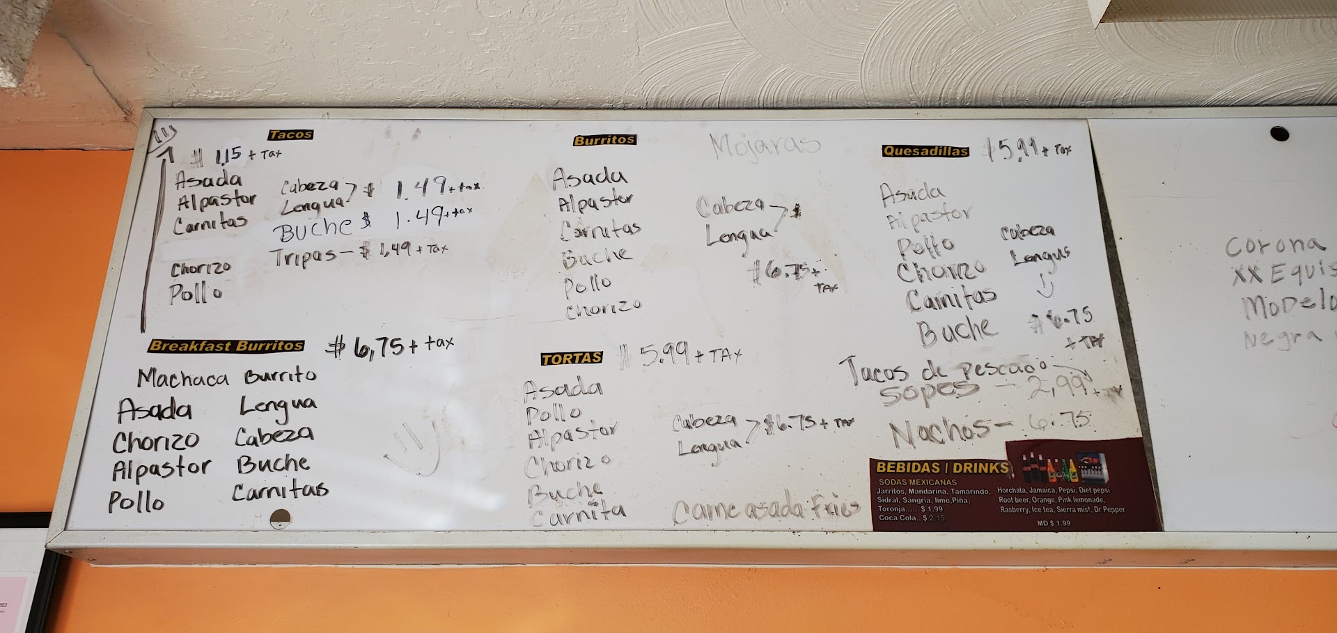 Read moreI had passed by here and it smelled wonderful. I waited two weeks to try it and when I went there my mouth was watering from the delicious aromas that were coming from the kitchen. The staff was friendly and welcoming. We ordered the Friday special: 2 taco plate (carnitas) with beans and rice, an Al pastor quesadilla, a chorizo breakfast burrito, and a chicken sope. I was so excited to dig in. The Carnitas were as amazing as they smelled, however, that is where the yum ended and the yuck began. The chips were stale there were metal shavings in the refried beans and the rice was dry. The quesadilla was bland at best and the chicken on the sope was bad. The burrito, while being able to order breakfast all day is great, was nothing to write home about and frankly I am in shock that they have...