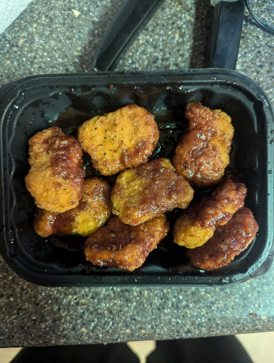 When I finally got my order taken, the girl again seemed annoyed at me for no reason. I ordered a ten piece honey BBQ nuggets and only received 8. I took a picture so you could see that they didn't even really put the sauce on them all that well. And then they gave me the wrong burger. I wanted a Dave's triple combo and got a baconator. I mean, I should have checked but I didn't.