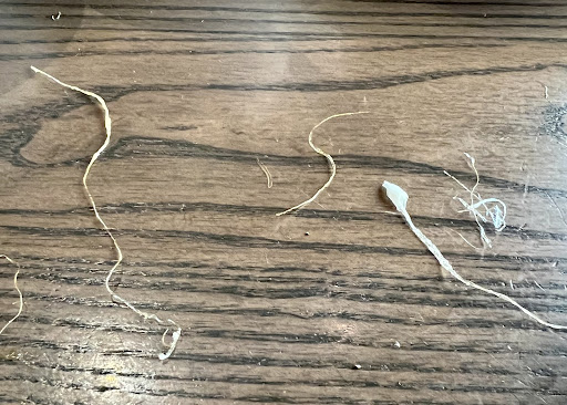 I looked at the eggs more closely and found even more of this stringy residue along with what appeared to be a number of human hairs. I asked our waitress to summon the manager since I had already brought the problem to the attention of our waitress and she made no offer to remake the order.