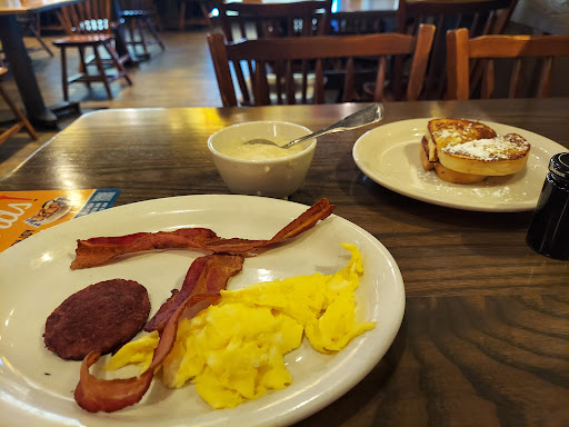 Read moreThe ONLY reason I am giving this a 1 rather then a 0 if I could is because both the cashier and our server was wonderful. The rest of everything was disgusting. When I arrived, they were not super busy and we were seated near the fireplace at a table with wobbly chairs. I can excuse this, most restaurants have that these days. What I can not excuse is the absolutely abhorrent grill worker that they had on staff for breakfast. You know there is something wrong with your cook or kitchen staff when you can not get the simplest egg preparation right. I should mention before I really start that I was here at 9:30 am - 10:30 am, so there during what should have been prime breakfast time.
