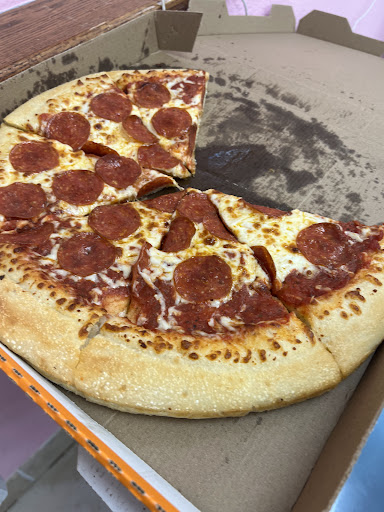 The pizza here is cheap and delicious. My usual order includes one of their pepperoni pizzas that has the extra pepperoni, cheesy bread, some hot wings, various sauces, and a two liter soda. In my experience recently, if you order online you can get a free two liter soda which is a great deal. The cheese is always hot and fresh tasting along with the bread and wings. The portion sizes are excellent, especially the marinara sauce that accompanies the bread.
