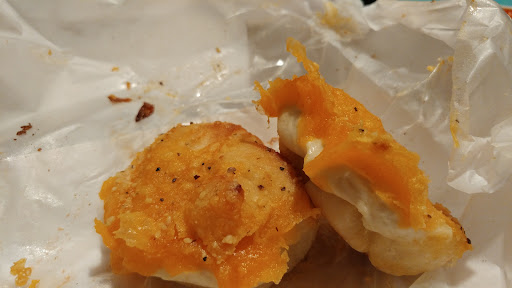 Read moreI've ordered from this location on many occasions and, up until recently, they were efficient and fulfilled my order exactly. My last four consecutive orders have been way undercooked, but never to this degree. I ordered the garlic knots and, not only was I given the wrong item (note the cheddar), but they spent a total of what I would estimate to be three minutes in the oven. By the time I brought them the half mile back to my house to eat, they were no longer warm and didn't have anything more than their outer layer to offer the hungry mouths I'd brought them home to feed. That white layer you see on the profile of the right "knot" is pure, uncooked, squishy, slimy dough. The inside wasn't cooked at all; it wasn't a question of which knot I chose from the box, it was uncooked in all of them. My dinner companion thought it was mozzarella cheese until he stopped to actually taste what he was eating--yes. Raw dough. I'm disgusted with this location and I will be going out of my way to avoid it...