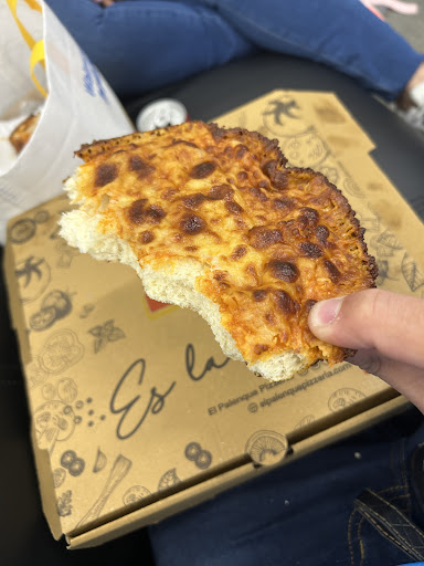 El palenque pizzería es tan famoso, lo promocionan tantos artistas e influencers que tenía la ilusión de probarla. Siempre pasaba y me daba cosa no poder parar para probarla. Bueno, un día de pronto sacó el tiempo y voy, incluso con mi tía. Creyendo y diciéndole la clase de pizza que iba a probar. Resulta que fue todo lo contrario. Una decepción total. No estaba nada deliciosa, y horas después la pongo al horno para calentar y pues la textura de una galleta dura y tiesa, y el queso jamás se enteró de nada. Realmente no es problema cuando la dejas en el frío unas horas. Yo la he dejado de un día para otro y no me ha pasado eso con otros restaurantes. No soy de dejar reviews, pero Palenque pizzería sin dudas, NO ES LA MÍA. ACA KES DEJO UNA IMAGEN DE LO QUE LES HABLO. ESO HABLA...