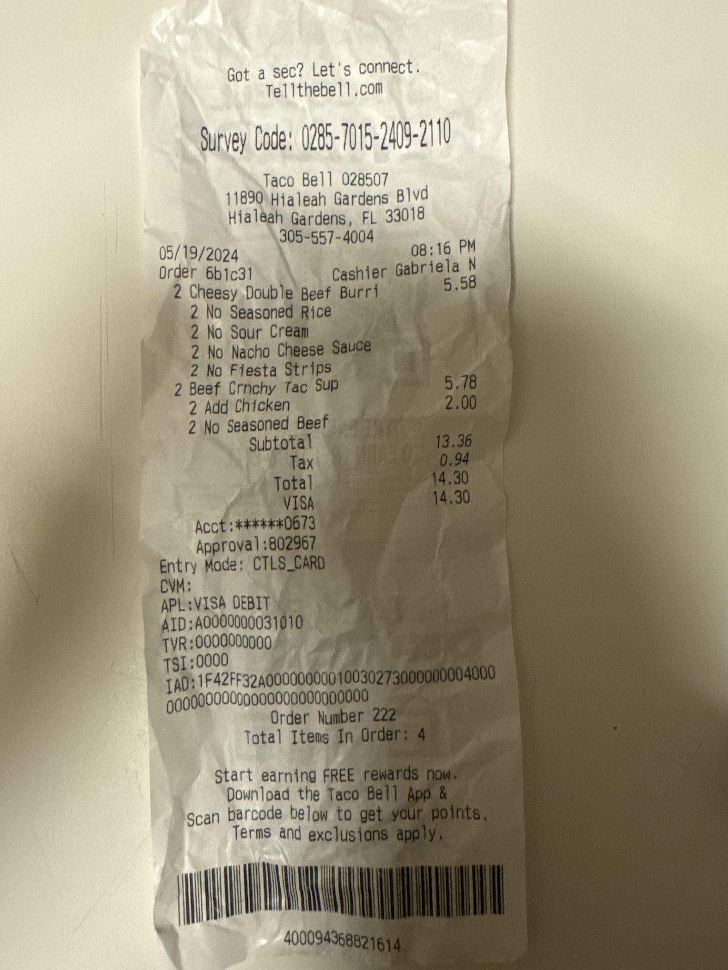 Read moreWhen I placed my order through the window, I was specific to the employee to confirm that my order was completed. He told me yes. When I got home the order was incomplete. I went back to the place and request my order to be completed. A nice lady took care of my complaint. When I saw the employee that took care of me through the window I told him to please next time to check before delivering the order . His answer was to just come back if something was missing. I felt no respect from this individual with that kind of answered to a customer. I bet that if it was his business the answer will be a better one. For you reading if you go and see the guy with tattoos in arms and neck plus earrings in both ears that’s the low life and irresponsible lack of respect monster working there. By the way nothing to do with tattoos , I...