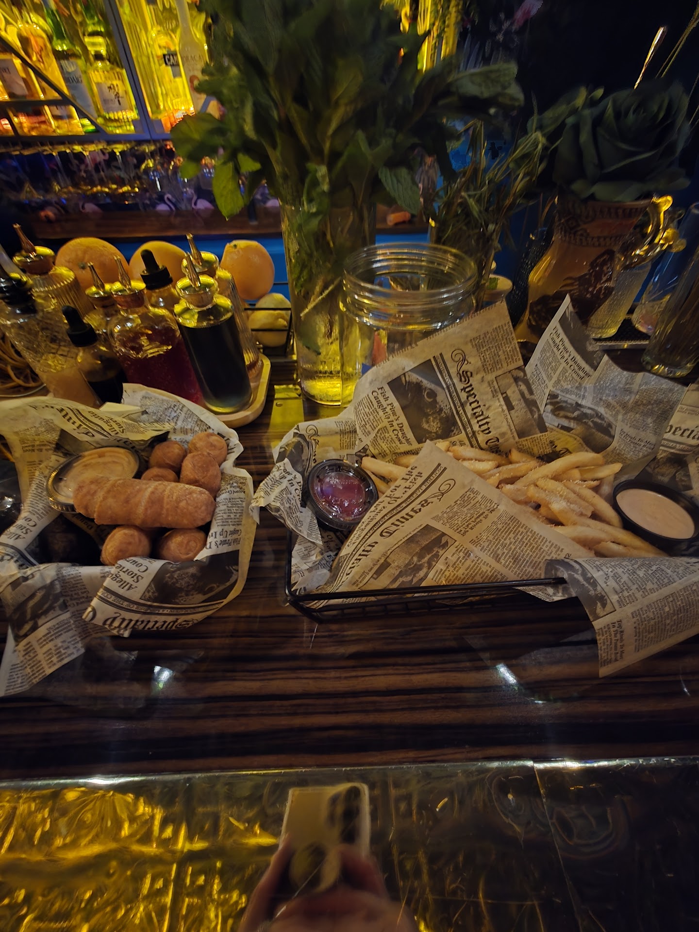 The only thing the food was like below average bar food. We got the tequenos and truffle fries. I wish they could do like more sophisticated appetizers that could pair with the drinks. The food available was basically all fried, not really fresh/bright ingredients.