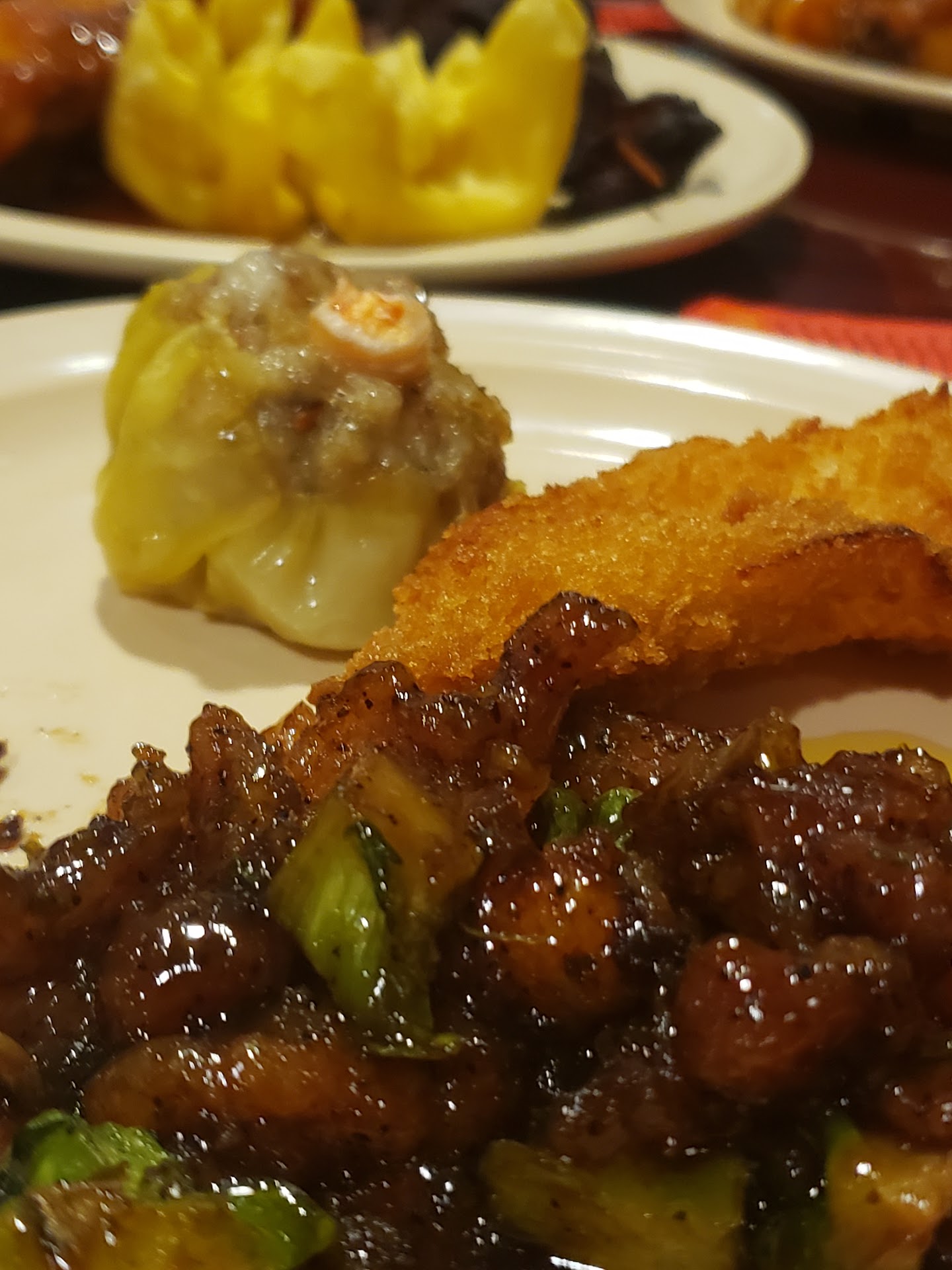 Mind you, sometimes the items are cold or unpleasant when tasted. On this day, it was the ragoon, sushi, and some chicken offerings that were a fail. Aside from the fact that we had to consistently fish for clean plates out of the plates provided. No one complained about that, we just found clean plates and kept it moving.