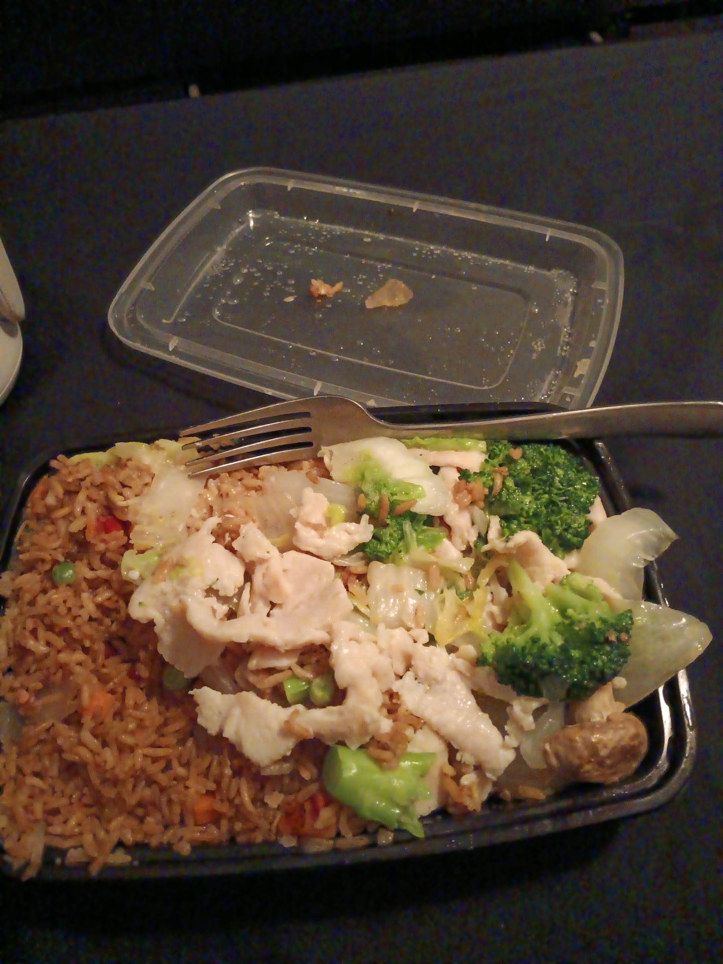 I wanted to try something new and got chicken chop suey and the pictures I saw online were amazing and this is what I got. An unseasoned meal....this chicken is so white it's allergic to salt and pepper.... smfh so upset it's supposed to have a sauce over the chicken and veggies and I got plain garbage. This place has been sadly going DOWNHILL for a while now.... so annoyed....