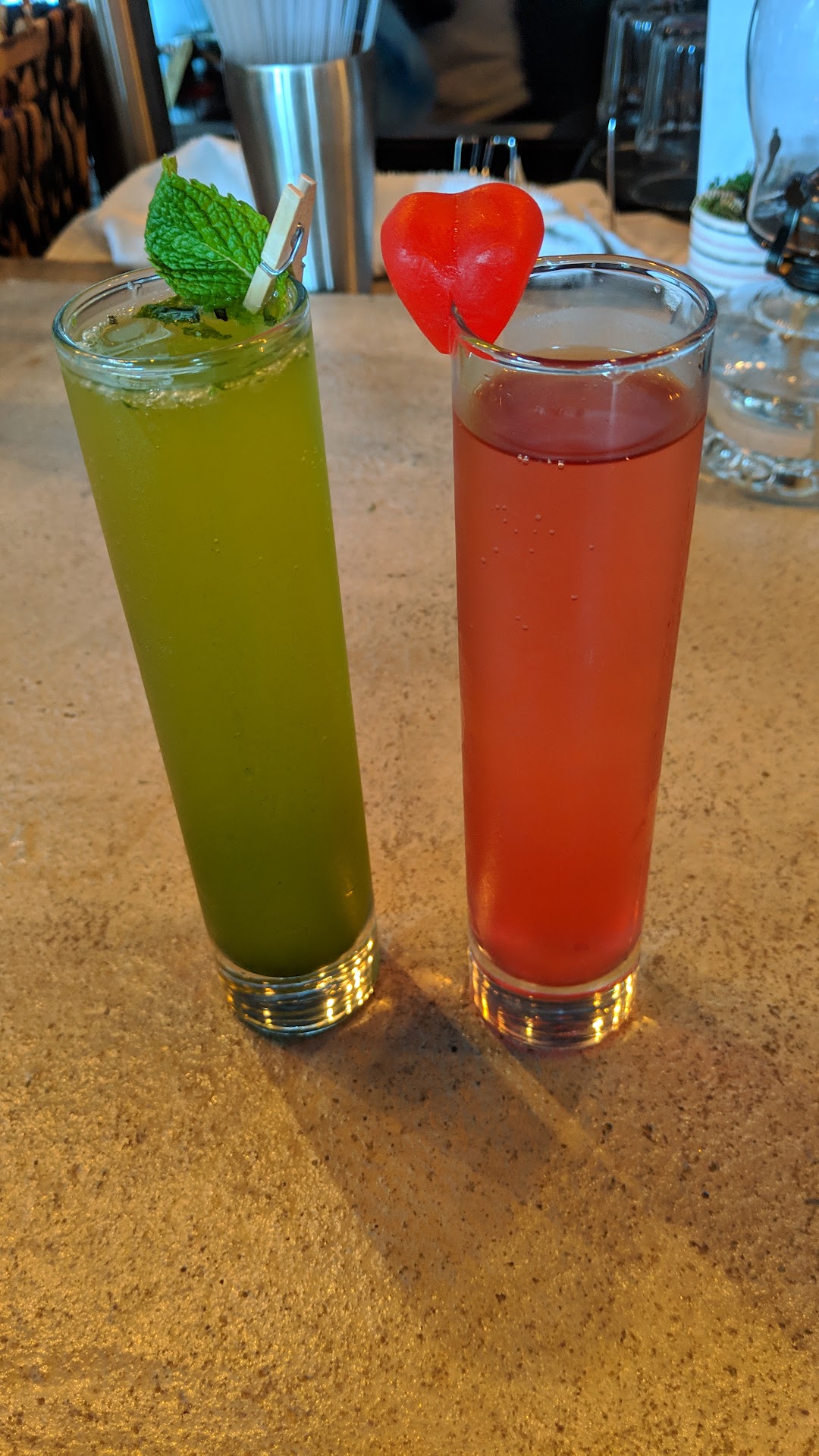 To begin with the drinks menu here is a SCAM. My wife and I first ordered sangrias which show on the menu that they have triple sec, brandy and sprite. The sangria was flat, and aside from that, had an overwhelming taste of perfume. I asked if they use lemon and orange juice concentrate and they assured me that they use real “limes”. Again, the taste was so overpowering I felt I was being deceived. They also explained that their drinks do not have pure alcohol since they do not have a liquor license and that their brandy and triple sec won’t be as strong as we expect. However, they’re still charging FULL prices. For example a “Margarita” with a beer goes for $30. GTFOH.