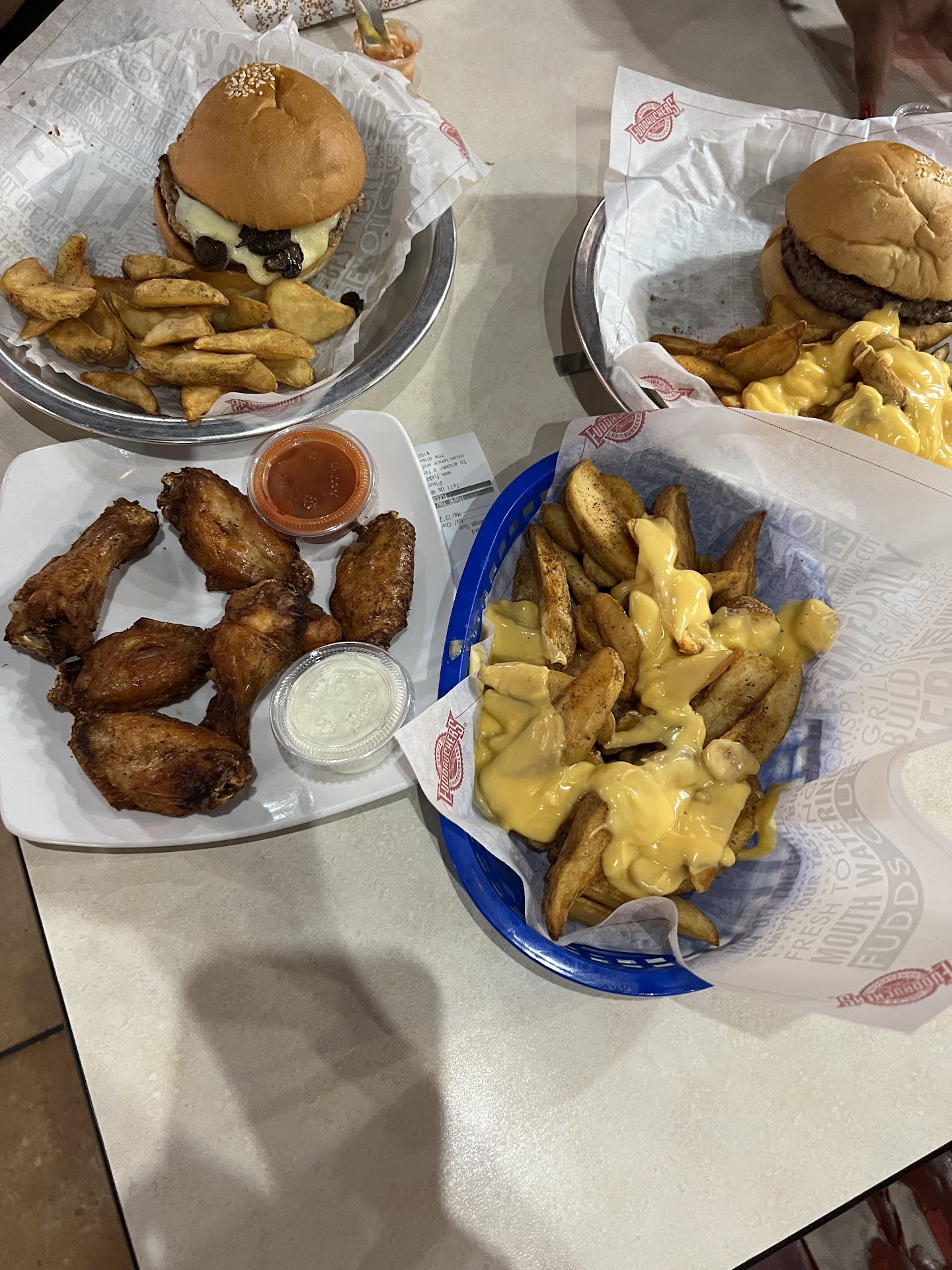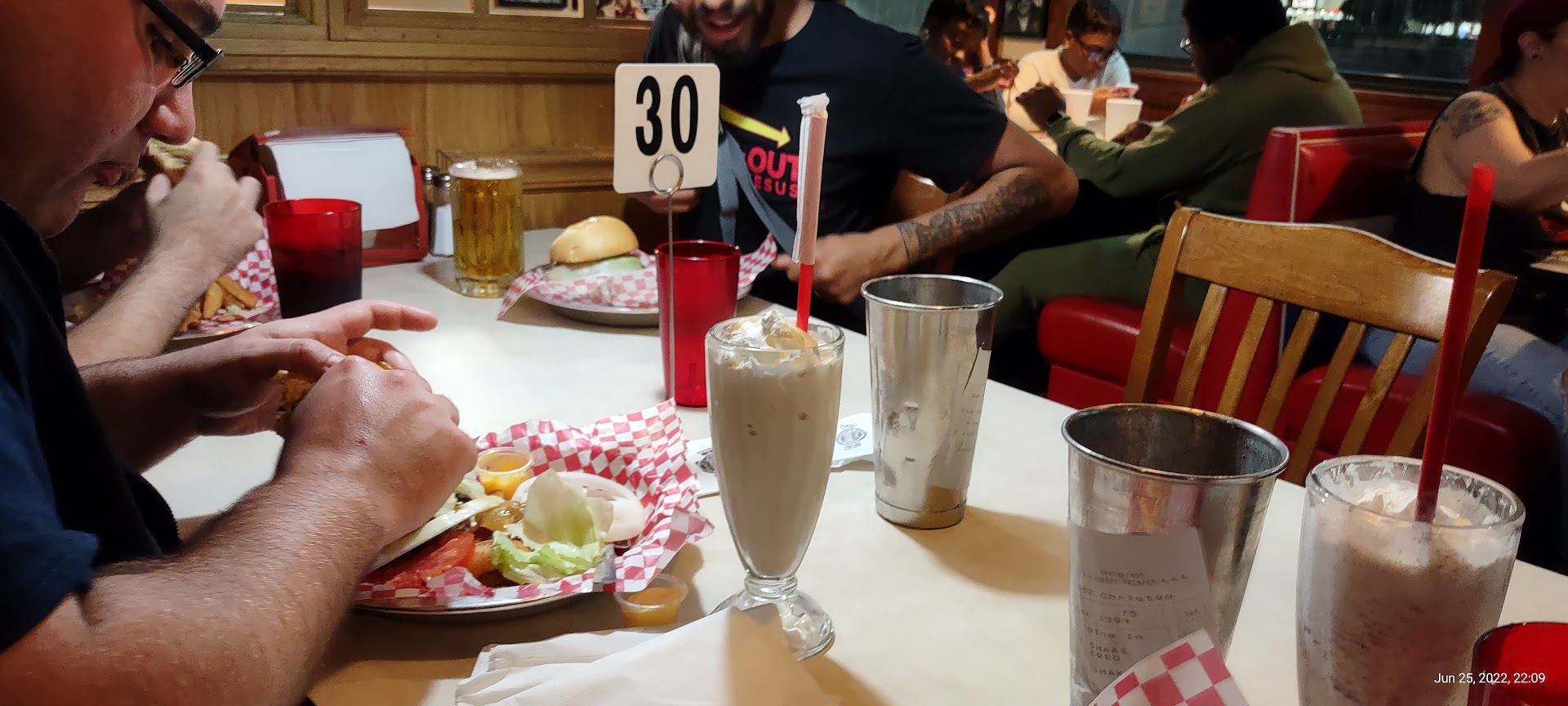 Mathew was a horrible cashier. I paid a total of 50 dollars for two combo of burgers with shake and loaded nachos, tbh it was very overpriced. The food looked good but quality, not it. Tell me how I had to wait por las ganas del cashier to make my shake. My food was all done, and I was waiting for my shake. I thought they were gonna be like good portion no they were 10 Oz. I tried asking for the shake at the cashier. Mathew was on his phone talking and laughing, and then he was like, wait a second and then go to the back and proceeded to talk on the phone he comes back and says that they will be delivered to the table I wait 10 min and still no shake I asked the lady when they are gonna come and she says I had to wait on Mathew to make them and now Mathew is with a big line I'm like are you serious he was just on the phone and then he went to talk to sum girls. It was horrible I lost my appetite I had to get to go boxes because it wasn't it I got the shakes it wasn't worth the wait it really wasn't and then they put the rest of the shake since it didn't fit all in the glass on the side for $50 the...