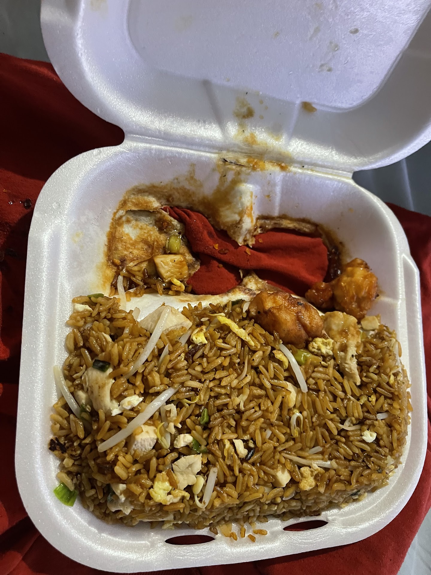 Read moreI ordered my food off DoorDash. I save my food for later. I order Shrimp lo mein, Crab lagoon. I don’t understand why. Y’all put special fried rice with My Shrimp lo mein. I am a pescatarian… So I picking over the rice 🍚 to save. But to remind you, tomorrow is Thanksgiving. So why not save, it for work on Friday. Tell me why I find a blue hair rubber band..In the rice 🍚 as I’m putting it in the food container… I just threw it all out.. But the Crab...