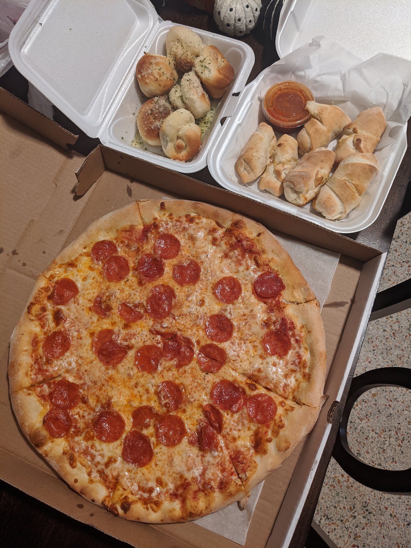 Read moreI lived in Chicago a few years ago and LOVED the Chicago style pizza there so I was really excited to find a local place that makes it. The order was actually delivered faster than expected too which was nice. We got the meat lovers Chicago style pizza and a NY style cheese. The NY style pizza was OK but I was quickly disappointed with the Chicago style pizza upon the first bite. It’s very thin, not as thick/loaded as an authentic one, and the meat was very sparse for a meat lovers pizza. There wasn’t really any meat in the one slice I had. I got like a piece of sliced deli ham. My husbands slice was the same. It was mostly just a mess of sauce and cheese and we ended up throwing it away. The sauce was overly sweet and there was way too much of it. My pizza arrived cold, but granted I don’t live super close to the restaurant. Long story short, not what I was expecting so I was disappointed. It’s highly unlikely that I’d order from here again. I’m attaching a pic of what I got today, and a comparison pic of an authentic...
