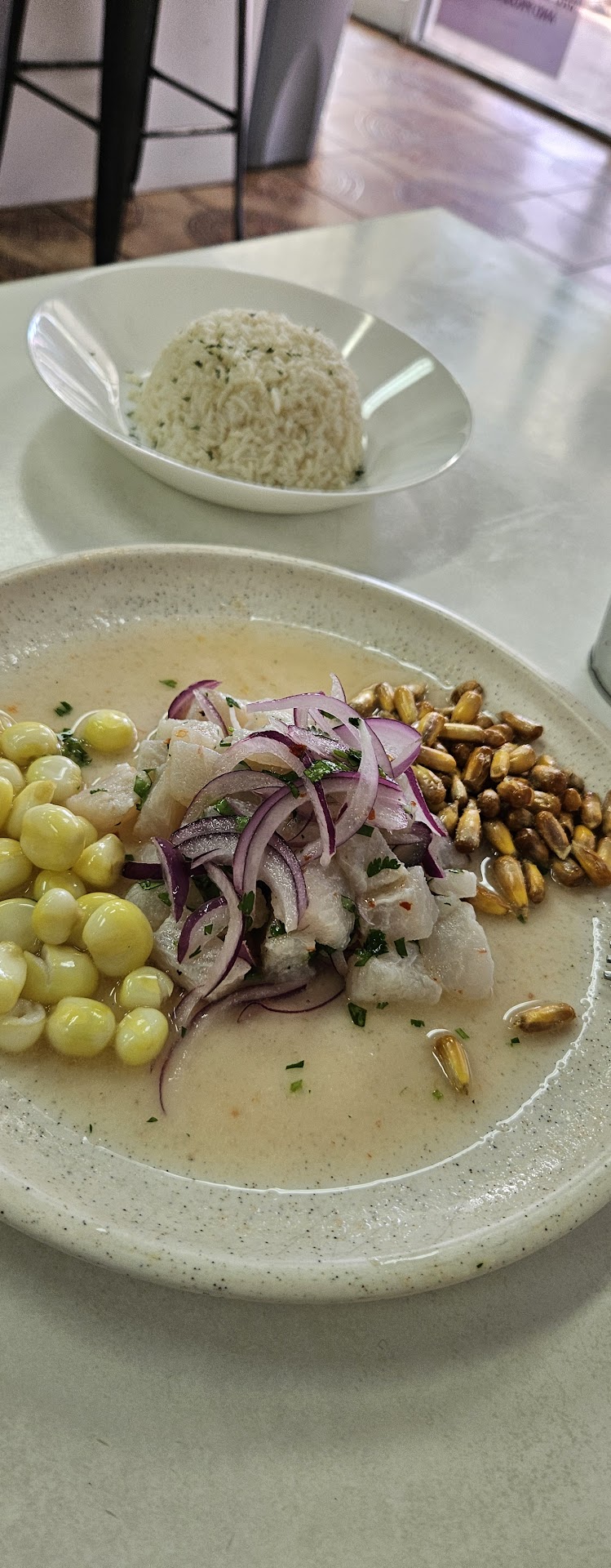 Read moreI give two stars because the only good in that tiny restaurant Peruvian was the ceviche. My husband and I went there because it was recommended as authentic Peruvian restaurant but unfortunately we was very disappointed. The Pescado a lo Macho we orderd without shrimp because my husband is alergic and still he felt allergist reactions; they didn't put more calamiris for the ommitted shrimp.That especific plate should serve with seafood sauce not a soup like he got. I ordered a fry red snapper fish with fry maduros and the fish was very small and the maduros was burned and not cooked inside, that dish alone was $ 25.00. Almost $100.00 for not a good food. Don't waste you money there. We been in better Peruvian restaurant in Miami...