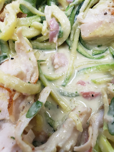 The rest of the food was equally disheartening. My Alfredo sauce was watery with an odd vinegar tang, and the chicken was dry and overcooked. My guest managed to eat part of her entrée, but her peanut smoothie was so unappealing she only had a few sips—it tasted like nothing more than cheap peanuts. Even the pistachio cake tasted overwhelmingly of monk fruit sweetener rather than pistachio itself, as though corners were cut on quality ingredients and masked with excessive sweetener. In the end, we still left paying $57 for a meal that went mostly untouched.