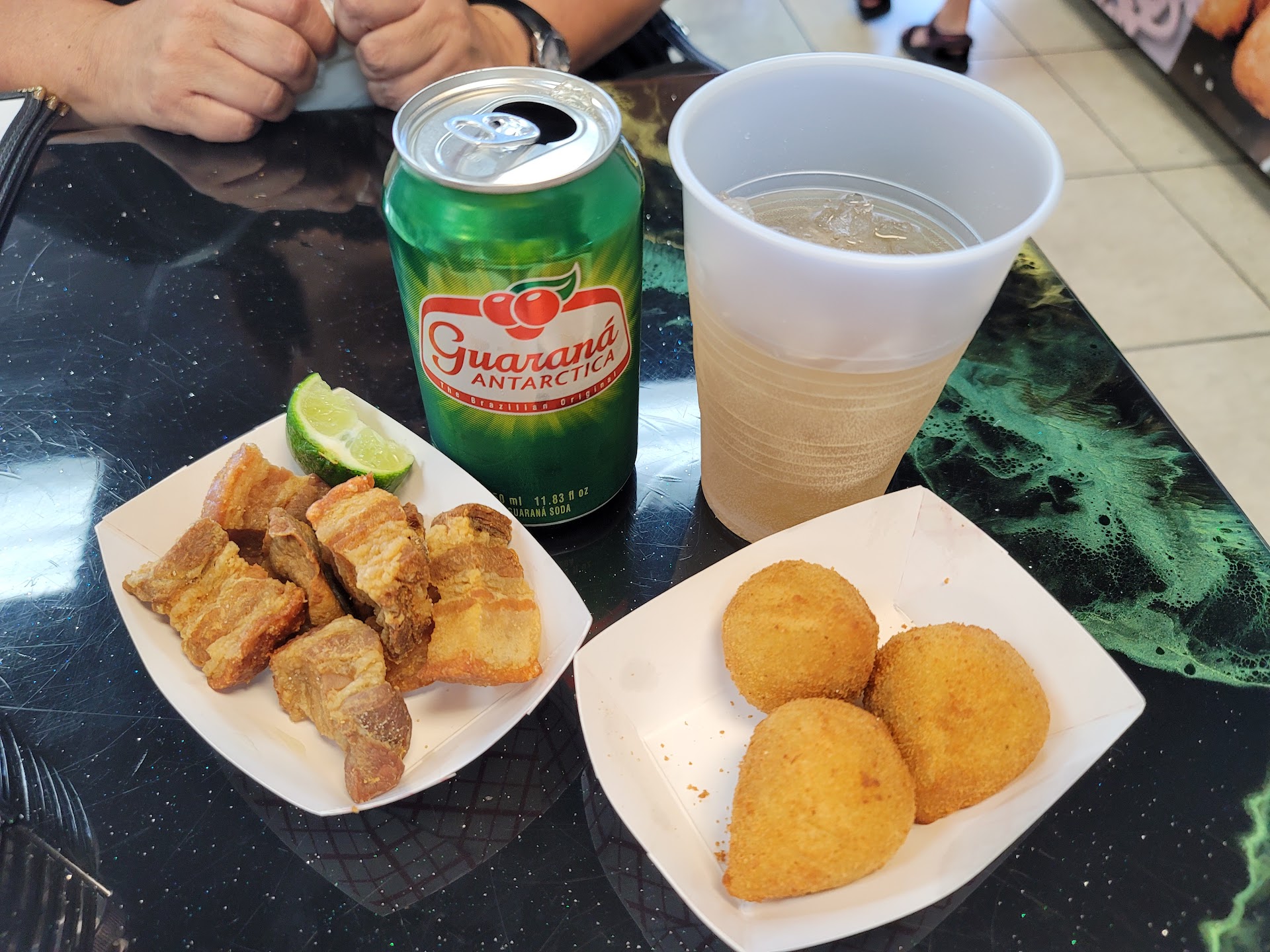 Truly appreciated and enjoyed our time at this place. Service was excellent with a family atmosphere. The place was very clean with the tables at a good distance from each other. I tried chicharones and I must admit been disappointed when I received them. I'm familiar with the big chunks but these were perfect in taste and bite sizes. The correct proportion of meat to fat ratio. Can't rave enough!! They were great!! My amazement came after trying what resemble a small stuff potato ball. These were stuffed with a mixture of chicken with cheese. These fried stuffed potatoes are the reason you should stop and give this place a chance. Amazing!! Also they sale these little dessert balls that are also perfect bite size...my favorite was the chocolate!! I will definitely recommend this place for a lite lunch or dinner. We are blessed here in Miami with the chance to learn and try the different flavors and customs from many of our neighboring ethnic...