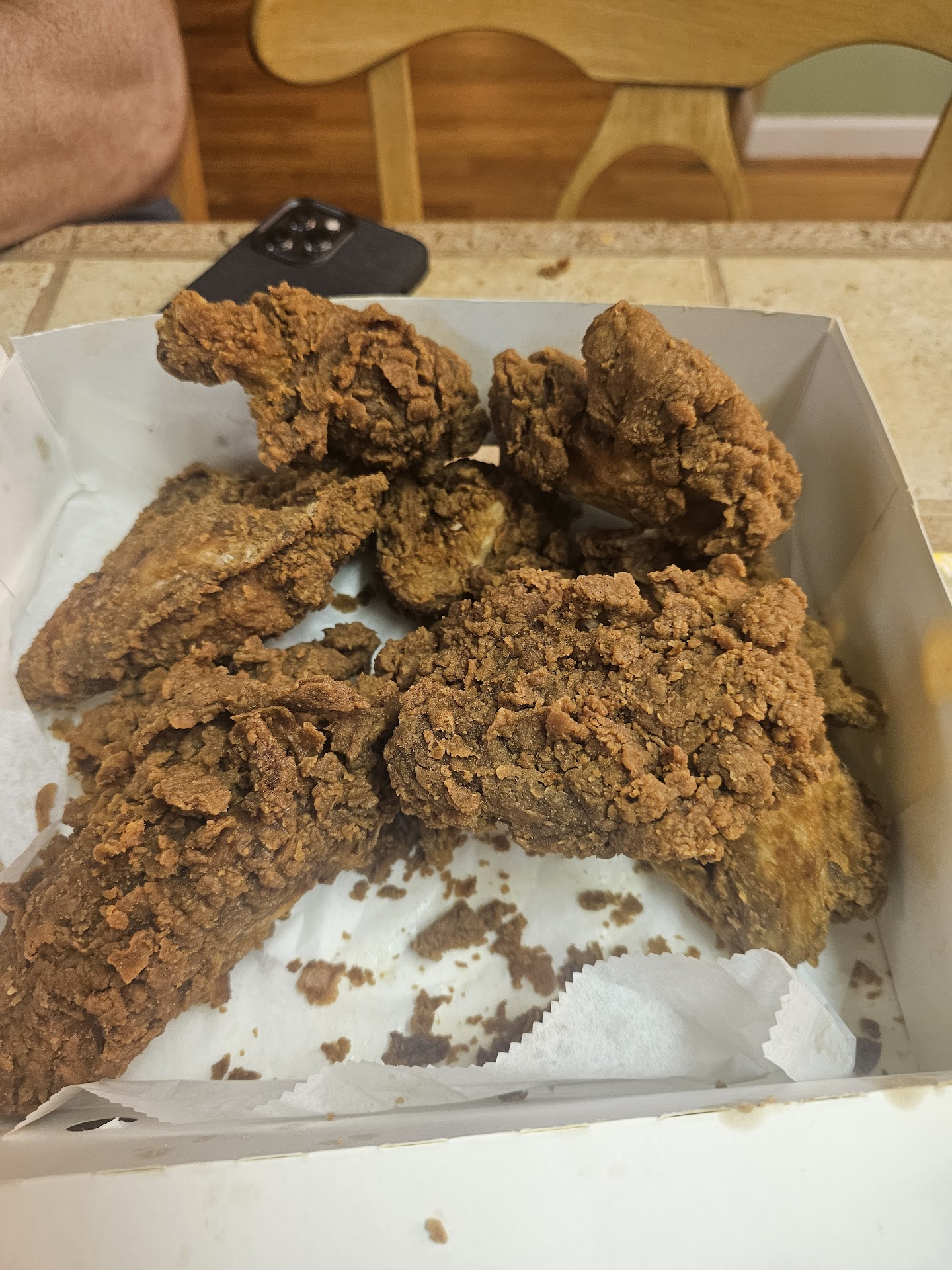 Read moreI just ordered a 12pc tailgate and a chicken supreme combo with fries First ... they were out of chicken because the cook decided it was time to go home so he cleaned instead of dropping chicken ... So I replaced a leg with a thigh.... no biggie Then they were out of fries i had to wait an additional 5 minutes ..so the "manager" told me he would give me bo berry biscuits for the wait .. i said ok I have 5 children .. his response "wow that's alot... let me go ask my manager" He comes back to the window and says "shes ok with that " but I had to wait 3 more minutes for the biscuits... he told me to pull up he would bring my food out Well about 10 minutes later a guy brings the food out and he said it's all there have a nice day They for got the cherry soda that went with the supreme combo and the box that held the tailgate was falling apart ... long story short .. I called inside to talk to the manager .. well guess who it was .. the man that took my order and lied to me about asking his female manager about they bo berry biscuits .. lol why lie? never again ... the chicken and rice was dried out the manager had a nonchalant attitude .. service and food was...