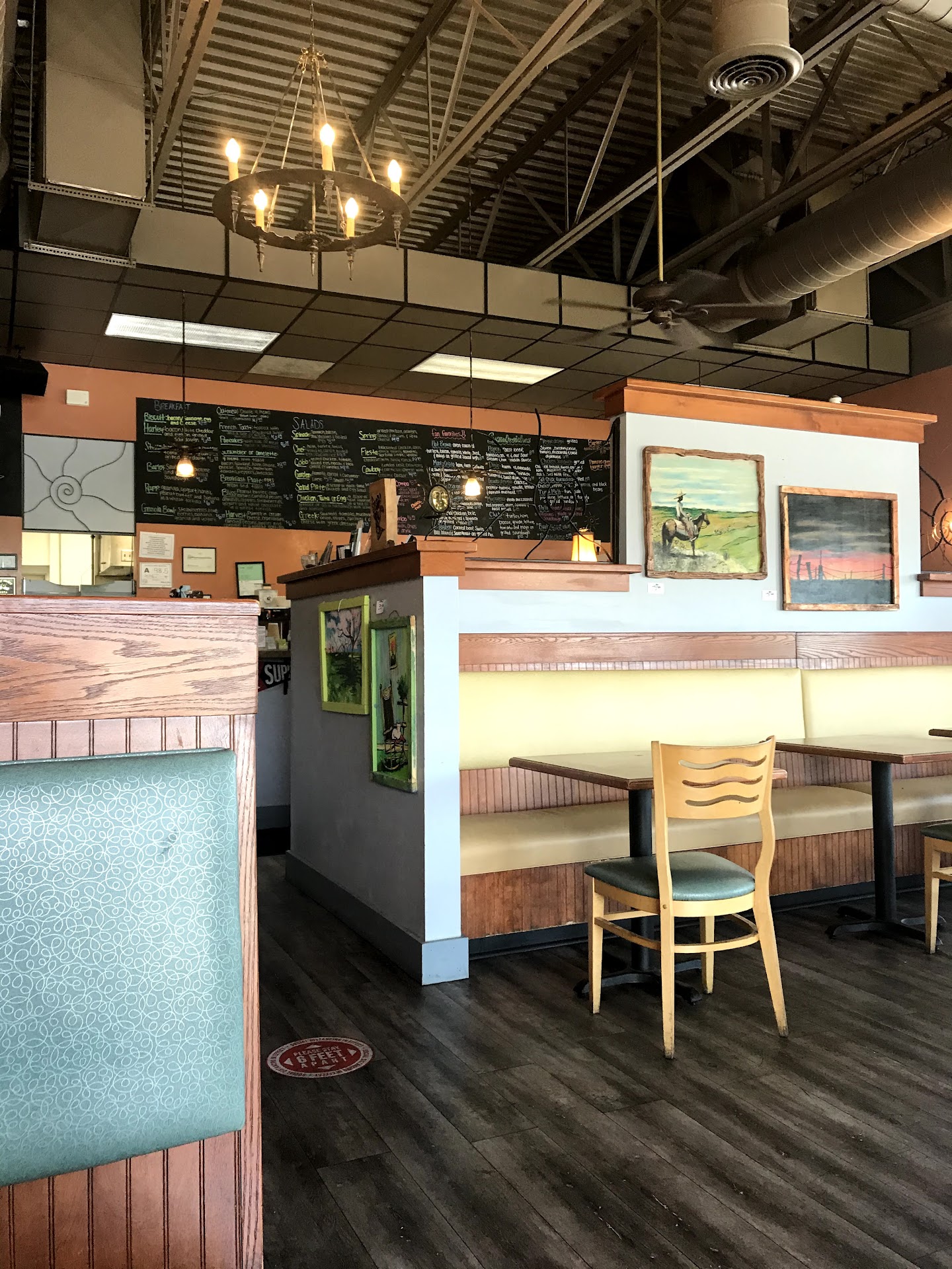 Read moreArrived at 9:55am on a Sunday and it was packed. Ordered around 10:05am after figuring out what we wanted and found the only seating open for 3. They clearly weren't thoroughly cleaning tables or chairs in between customers either. None of the staff and 98 out of 100 customers were wearing no masks so I guess everyone was vaccinated. They were out of coffee, fries, creamer, and paper towels in the bathroom when we got there and they hadn't even been opened 2 hours. We didn't get our simple breakfast food until 10:45am. Unfortunately my sister and her friend had to be back on the road by 11am so we barely had time to eat. The food wasn't hot so it didn't come out immediately either and they were clearly busy when we arrived but 40 minutes for some egg sandwiches was a bit too long and some things were not prepared the way they were ordered but there was no time to fix it. Although everything else everyone seemed to enjoy. I would prefer to go on a less busy day or at a less busy time. It was affordable and the staff wasn't rude but it took way too long to not be done 100% and hot...