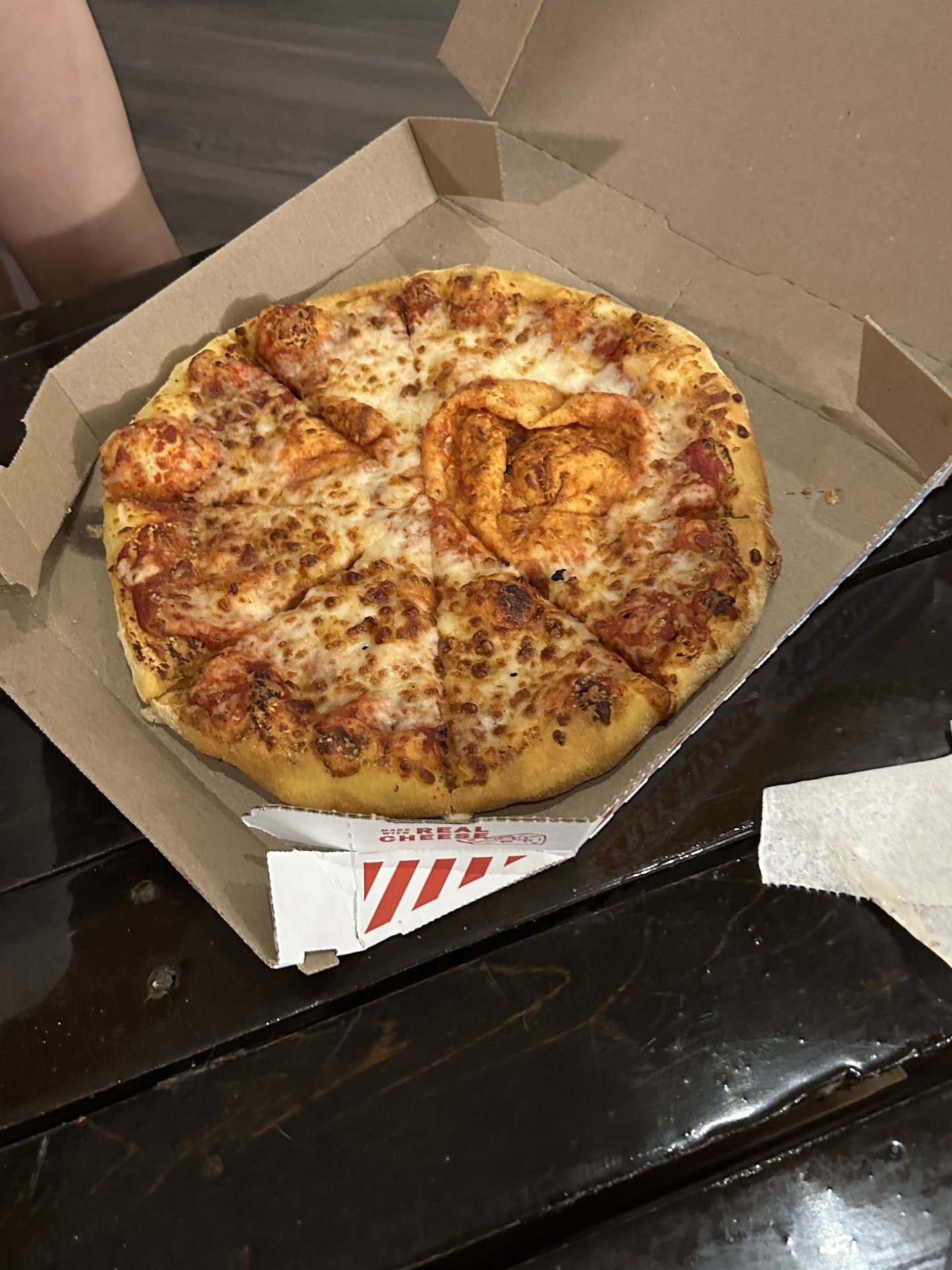Today, I visited the store around 4 PM to address the issue and see if the burned pizza could be replaced. The person I spoke with turned out to be the manager, which made the experience even more disappointing. When I explained the situation, she asked if I called the store last night to speak to the manager on duty. I explained that I did not because we had guests, but I had brought a photo of the burned pizza to show the issue.