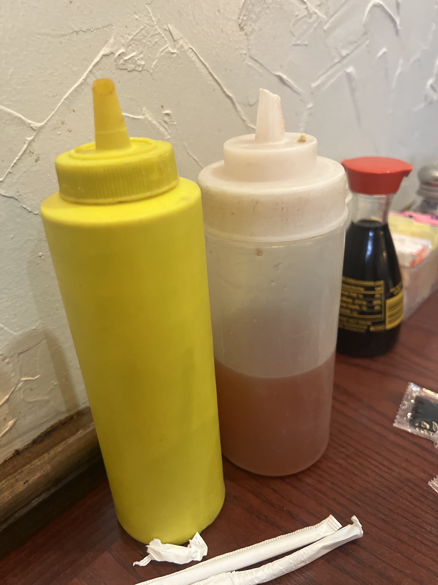 Read moreWe went here looking for some good Chinese food, and ended up with flavorless food, and a high price for flavor. For us to eat it cost $52 so we expected at least decent food. However the dumpling taste and feel like mush. The rice is flavorless, and the chicken even worse. It’s hard, half cold and half hot, it’s like it’s been microwaved. The drinks had a bad after taste and after working in a kitchen, it’s because they aren’t changing the spouts to their drinks. There was no seasoning and we had to douse it in pepper. The only redeeming quality was the staff. They were funny, nice, and put forth effort to make sure we were comfortable. The restaurant has character is one way to put it. You can see where it was leaking from the roof. I don’t care about the look of a restaurant, but the quality of the food. Overall food awful, service great, and atmosphere was meh. Also to top it off, those bottles in the photos, we tried the sause, and it’s been bad for a while. Could seriously make...