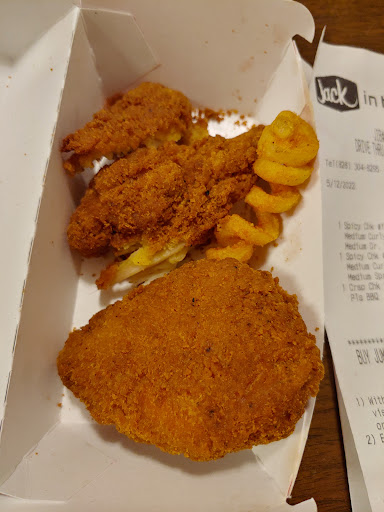 So being from Virginia Beach I've always wondered about jack in the box restaurants. How do they compare to other chain restaurants? How is the food? How is the customer service? Location? Well I got the urge to try one today. So the family and I hopped in the car and drove 5+hrs to the closest one in Hickory, N.C. When we arrived the place was not that busy but the drive thru had a bit of a line so we decided to dine in. 1 Coke machine that wasn't working and there were a few customers was all that was inside. I walked up to the counter and was greeted professionally. There were many items on the menu! Ranging from burgers to chicken sandwiches to a chicken fajita pita? And even breakfast was served all day. I was excited for the options available. So I ordered 2 ofthe spicy chicken sandwich meal with french fries one with curly fries. 2 orders of the tacos and the loaded mini tacos and a sourdough jack burger plus a chicken nuggets kids meal. The price for everything was about 40 dollars. I wanted to try the chicken and the burger options. So I opened the chicken sandwich the filet was large it hung off the bun. Mayo lettuce tomato was the toppings. It had a southern style breading that was crispy but soggy at the same time. The fries were cold as iceđ. The tacos were different they were deep fried with lettuce American cheese and taco sauce. I think they would have been better if they were fresh. The burger was lack luster. It seemed small and the bread wasn't toasted very well. The cheese was not melted and the toppings stood out more than the burger and it was a bit salty. Ambience, the restaurant was a bit chilly inside. The staff had the ceiling fans going full blast making the air inside cooler than it was. It's only 50 degrees outside... Why have the fans going? Location, it's in a pretty busy area. Lots of stores and traffic. Overall, This location didn't seem too bad. The quality of the food could have been better. And the temperature of the food should have been on point seeing how they weren't that busy. Do I think it was worth the drive.... No... Am I glad I got to try...