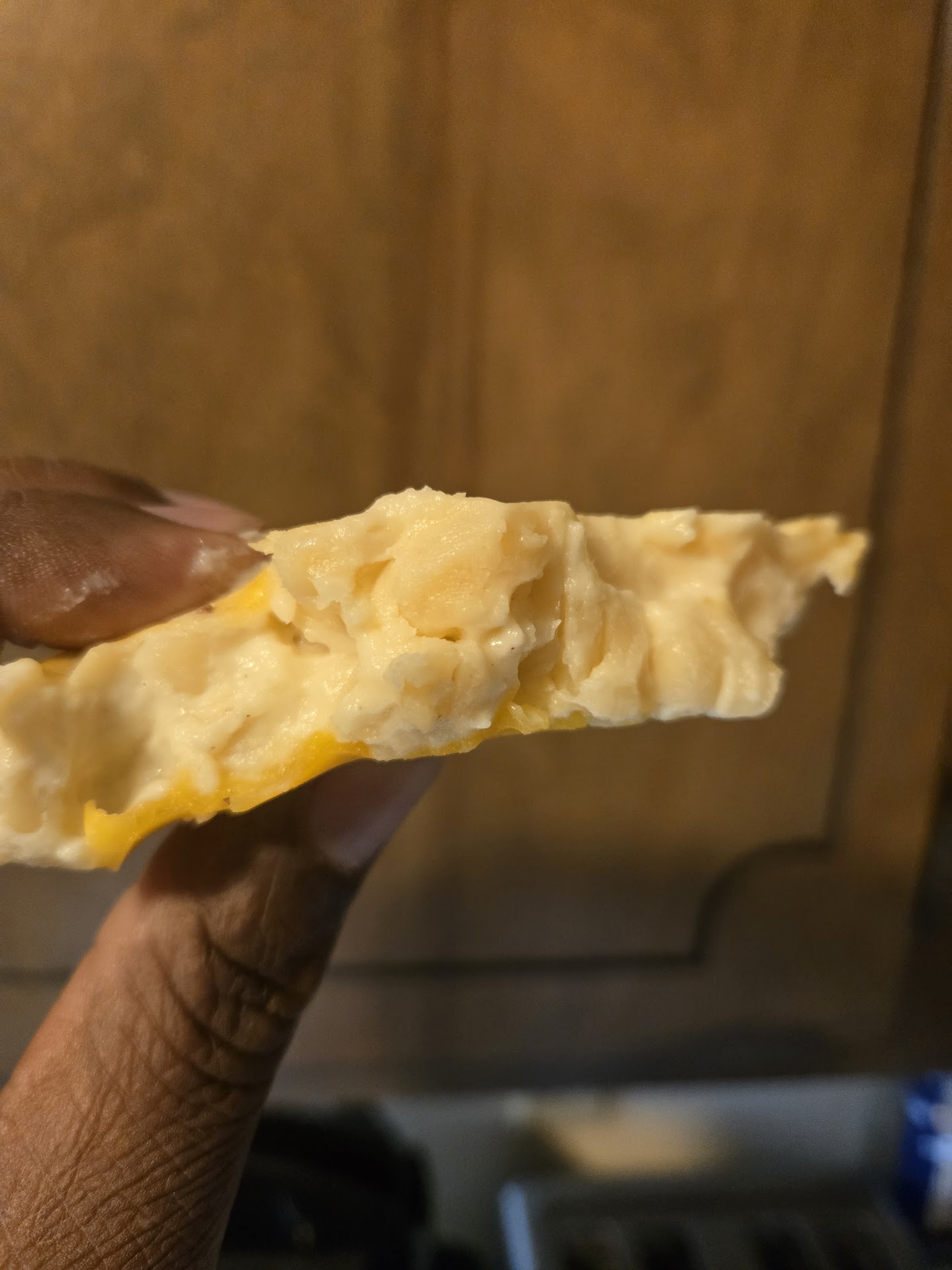 Dry, no seasoning, no salt, no pepper, no love, no care........straight cheese and pasta noodles.