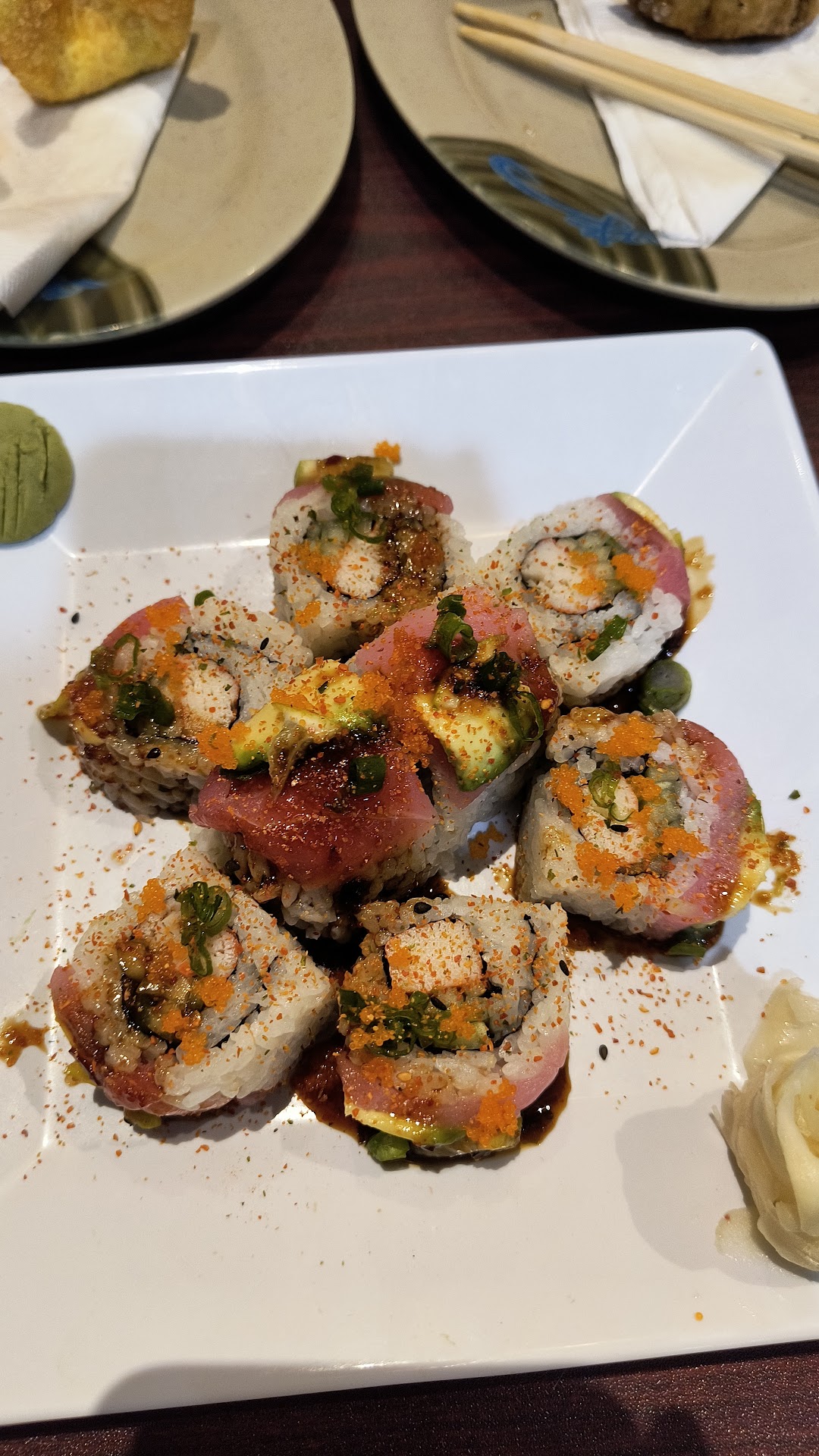 Read moreHighly overrated, especially for the price. The experience starts at the entryway. For whatever reason, the restaurant eliminated the airlock at the entryway, the result is if you're seated anywhere near the door a cold wind blows across you and your food everytime someone enters or exits. There is no printed menu available, you are expected to scan a QR code and download their menu. I understand that this probably minimizes their costs (they're certainly not passing that savings on to their customers but I digress), but a printed copy needs to be available upon request. There are many reasons a customer may need a printed menu and not having one available set a very poor tone from the beginning. The food: the best I can rate my entree is minimally acceptable. My wife's sushi was a nearly inedible joke. Meats dry and overcooked, the seaweed wrap on her sushi was tough and overcooked, rice overcooked, broccoli was an overcooked mess. Service: not terrible but not the best. Overall she was ok, but around 10 minutes into my meal she asked if I need a box. I was clearly nowhere near finished eating, and rushing your diners in this manner is very poor form. The only pros I can list are the shrimp sauce and teriyaki both have excellent flavor, the crab Rangoon was good, though slightly chewy, and the carrots were very good.