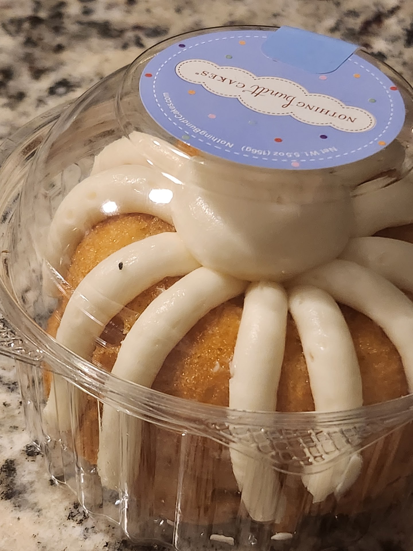 I had ordered the little bundtinis confetti for a work event that I needed for a coworkers birthday on Thursday. I ordered them Tuesday afternoon since I knew the bakery would be closed the next day for New Years, and I scheduled the pick up for 4:30 after my shift at work. I arrived to the store and had my confirmation # and email ready around 4:50-5pm. The girl I had at the counter took my name and my confirmation and she went to the back and came back to the front and gave me a box with a receipt and she asked me to “print my name” on the receipt. Whatever no big deal, but I did think that was strange.