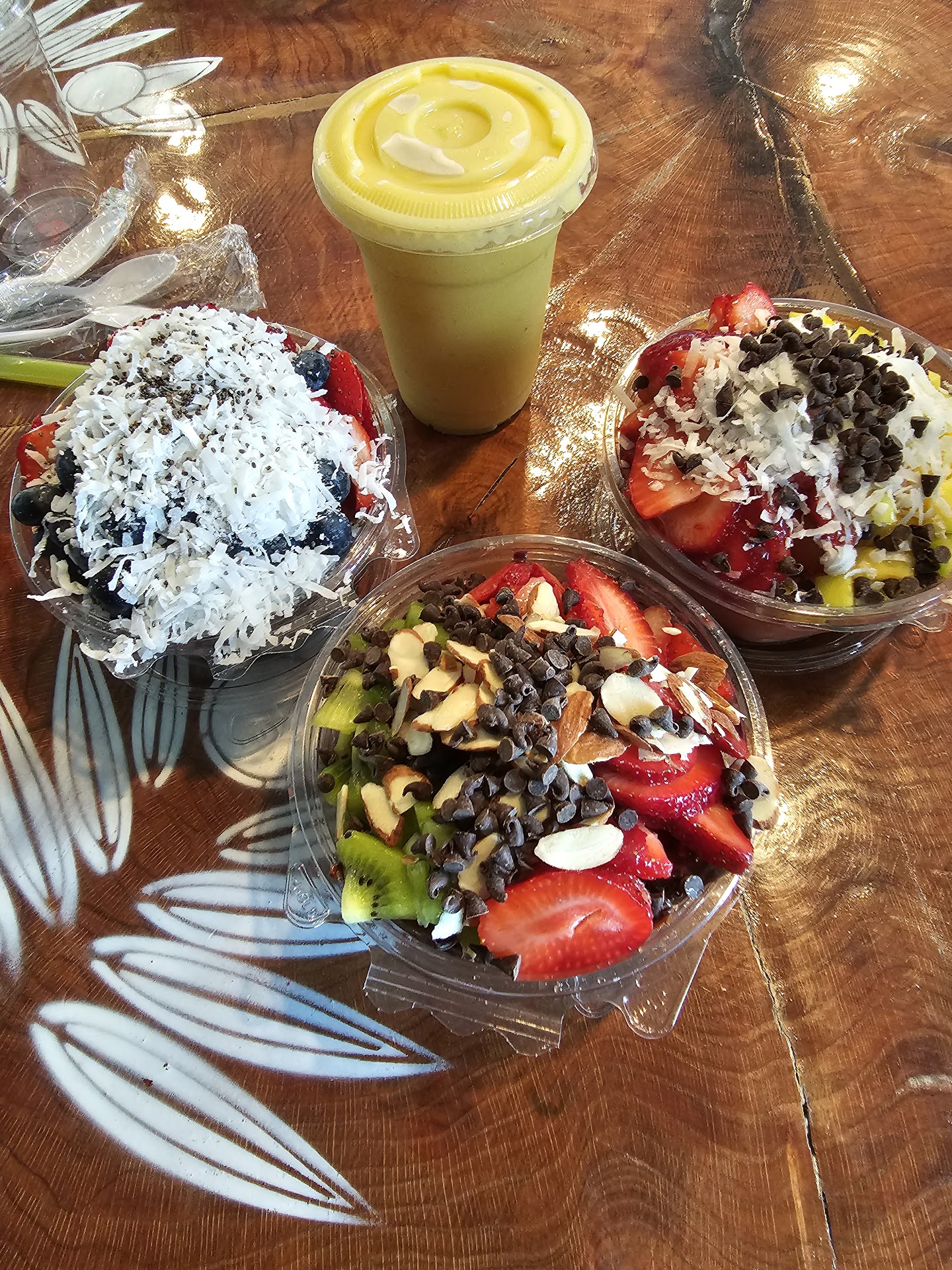 The best one I've been to so far! So gorgeous, lots of friendly staff and decorated beautifully! We got some of our favorite, then tried the new spring time bowl. It's definitely more of a base (one mango, one new starburst base) than an acai blend. One side tastes like straight sweet blended mangos(which is amazing but it has mangos on the top too so a little too much) and one is the new Starburst blend, which, no lie tastes like a pink starburst. Its topped with strawberries and chocolate bits and mango and shredd coconut. I beleive that was all, so it was good, but even though we love mango, was a LOT haha. But the staff was great, offering samples, answering questions and to see so many there, all doing something up front, amazing! We always go to the much smaller ones, so to see this one was amazing. They should all be this nice! My 11 yo even commented how much larger and "elegant" (her words) this one was over the others we've gone to. Lol. Bonus They even have a drive thru for pickup orders! Only! Sign said **Parking side note: getting out is insane, takes a good few minutes for anyone to let you out and you can't back up out of the "driveway". You can go through the drive thru, but if there are cars there, you'd have to wait for...
