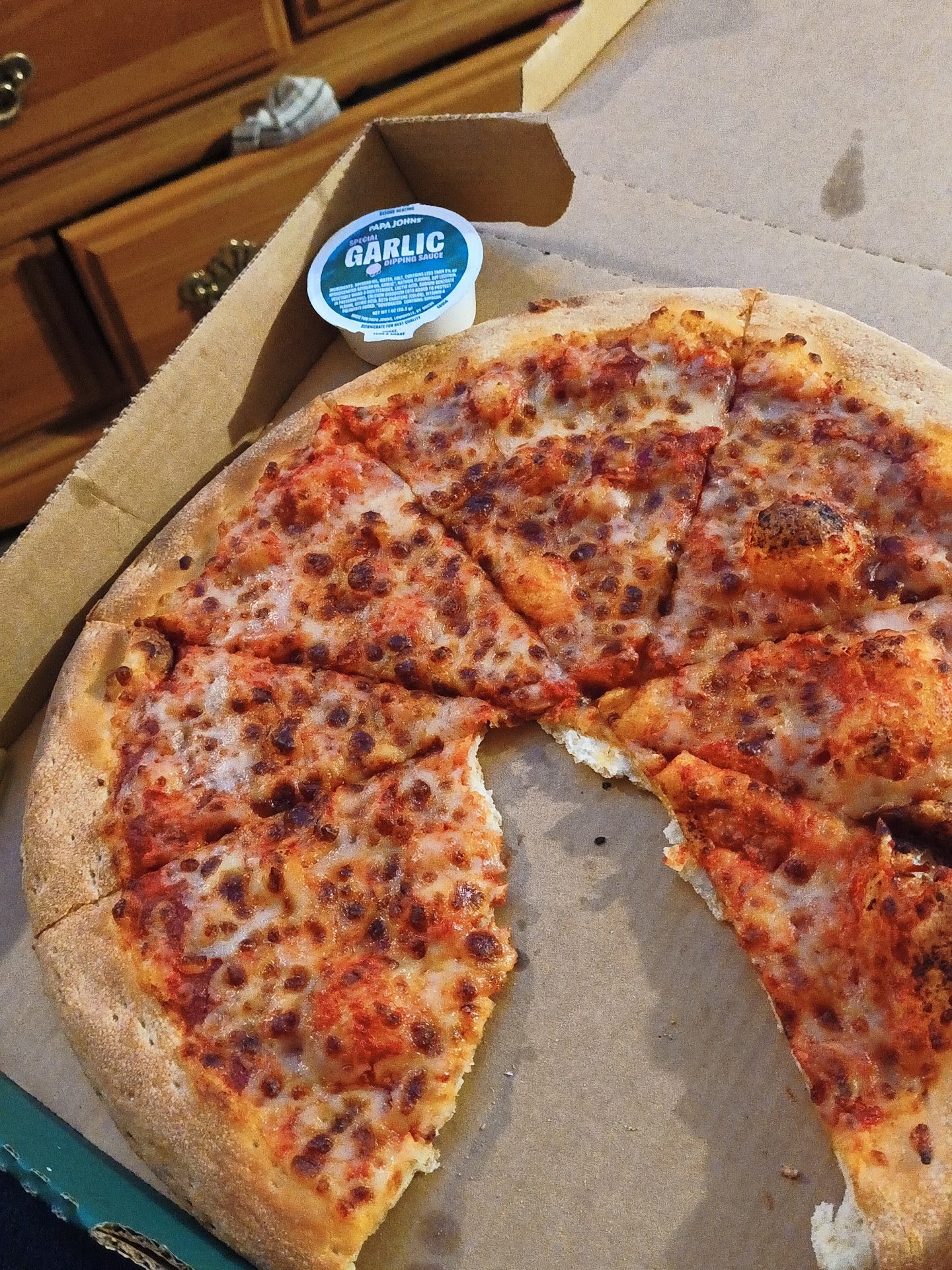 Read moreYou know, I had almost given up on Papa John's when I gave this store a try near a house I just moved into. As you may know Papa John's had across the board gotten skimpy with cheese and sauce and are today nothing like they were 25yrs ago, and their bottom line shows that people aren't happy with it. They will blame it on everything but their own product. This store however got it right! Grant it, we did order extra cheese to avoid being skimped on. But it was like going back in time to when papa John was the #1 pizza place. However, there is still room for improvement. The customer interaction is poor, as are most places today. When I picked it up the window opened, not a word was spoken. When the silence became a awkward I stated my name and the gal closed the window. She re immerged with the pizza price and took my card and disappeared untill the pizza was handed to me at which time to my shock, she wished us a good night. But she missed so many opportunities to make it a great experience. That's why chick filet is packed until closing time, it's the service. We can get nasty chicken fingers anywhere but people still want to be treated right and will go where they are...