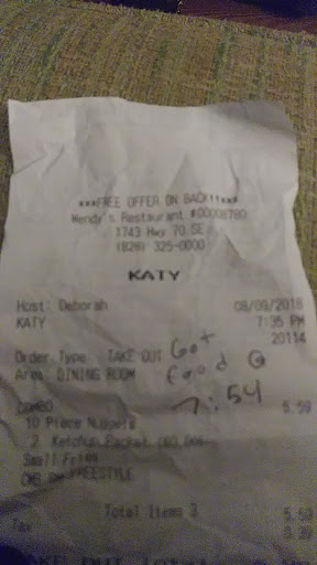 Read moreI ordered a #1 Dave's Single Meal and specifically asked for ketchup before I pulled around to the window. When I got my order, I double checked the bag and didn't have ketchup. I made eye contact with two workers inside the window who both looked away instead of coming back to the window to see what I needed. I waited patiently for several more minutes, and I even gave my horn one toot. Finally someone came back over once there was another person behind me to ask what I needed. I got 3 packets of ketchup and then left. Once I drove away, and opened my sandwich, I had received a spicy chicken sandwich instead of my cheeseburger! đ Since I avoid confrontation, I did try eating the chicken sandwich, but it was entirely too spicy and so I left more than half of it. I went back to the restaurant to see if I could get the correct sandwich. When I pulled around, the supervisor on staff exclaimed, "WELL YOU ALREADY ATE IT!" Then she rolled her eyes at me, and threw the remainder of the chicken sandwich in the trash. My entire experience made me feel so less than, like I was an annoyance instead of a paying customer. Honestly, I...
