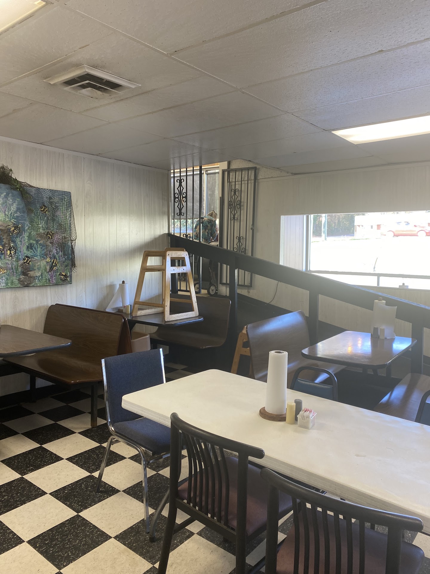 Would have been zero stars if I could. I took a bite of my burger and when I pulled it back from my face there was a long blonde hair extending from the back of my throat to the burger. Very nasty but strangely there was only one guy cooking and he had short dark colored hair. Before anyone suggests it may be my hair I'll go ahead and say you would be wrong bc I am a black man with short curly hair. I tried to give them another chance because I worked as a cook for many years. The next experience sealed it for me when I saw a baby roach crawl across my table while I was in the middle shoving a spoonful of grits in my mouth. I then panicked because I had dumped black pepper all over my grits and a baby roach isn't the easiest to spot in the mix with black pepper. If there was one baby roach crawling across the table there was definitely a colony if not multiple in there as well.I hate to give this review because they have been around my whole life and was a staple in my life for as far back as I can remember and a little over four...